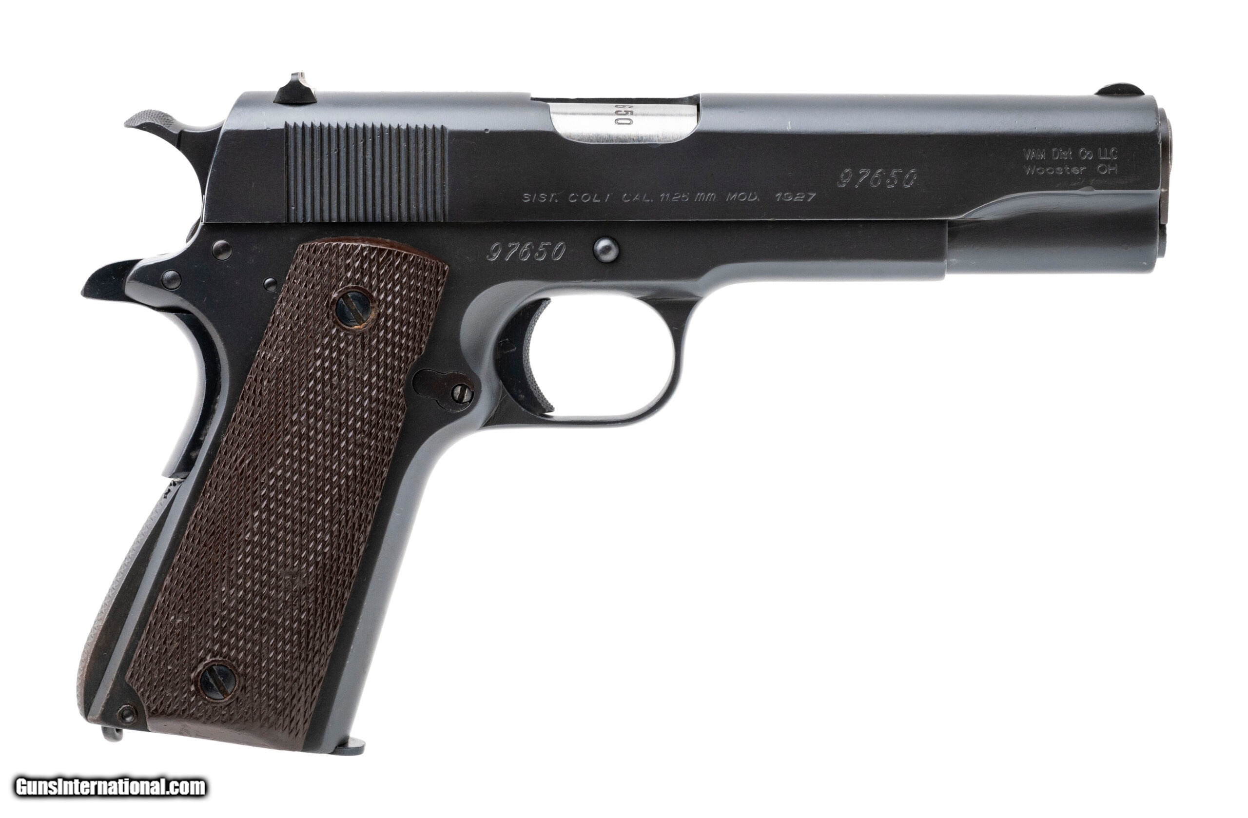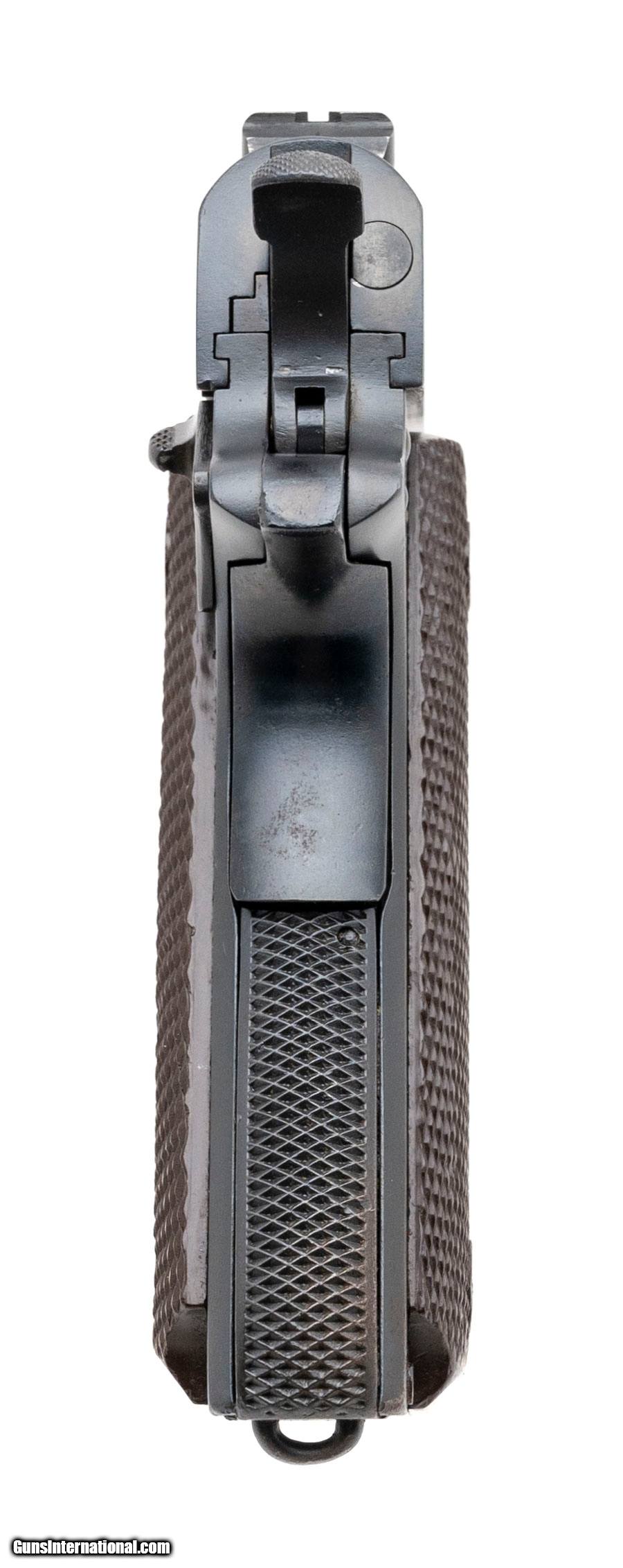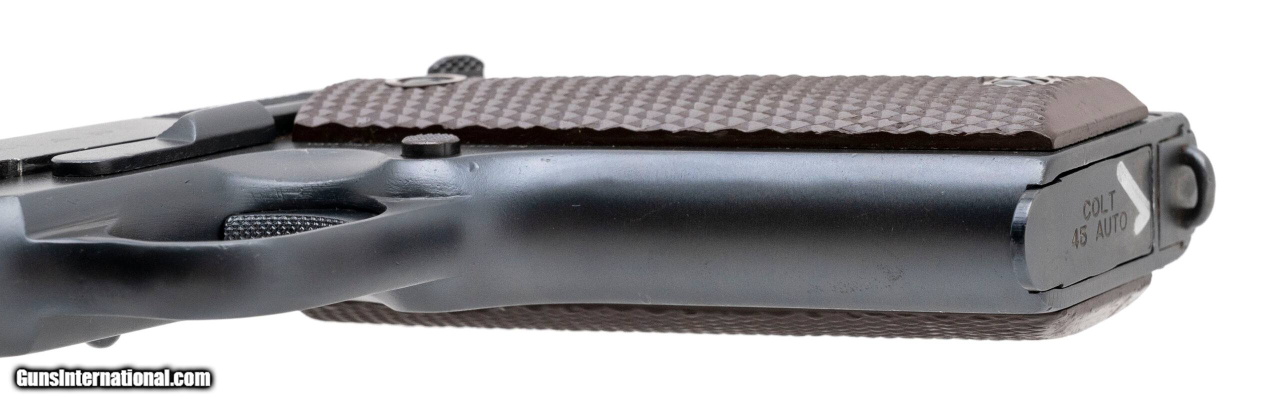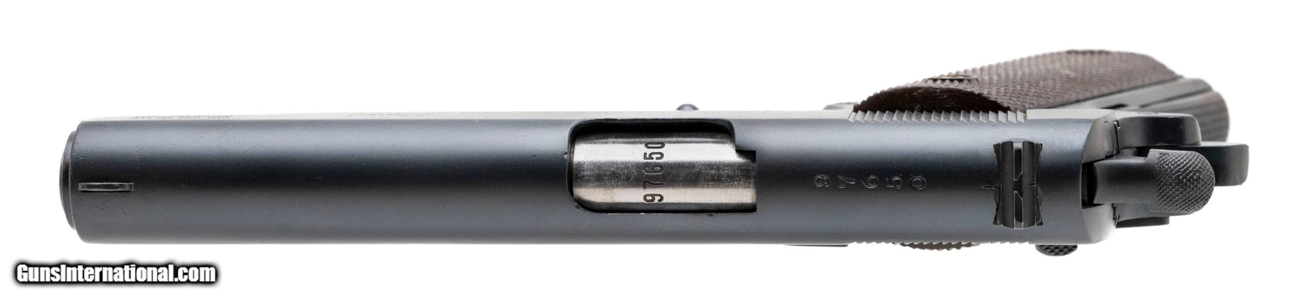 Description: "Serial No. 97650, made in 1958, 11.25mm (.45ACP) 5" round barrel. Bore is good with frosting noted in the grooves, rifling remain strong. Serial numbers are matching, re-arsenal finish rates about 97%. Grips have light handling wear, checkering remains sharp. Action is smooth and functions correctly. Consignment SOLD Curio/Relic: Yes |