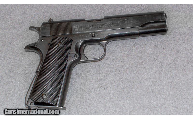 Description: This D.G.F.M. - (F.M.A.P.) Ejercito Argentino model 1927 Sist. Colt is a 1911 remake for the Argentinian army. Ejercito Argentino is Spanish for Argentinian Army .45 Auto SOLD Curio/Relic: Yes Metal Condition: Good Bore Condition: Good Barrels: 5 inches Weight: 2.45 pounds Item Location: Lone Tree, CO |