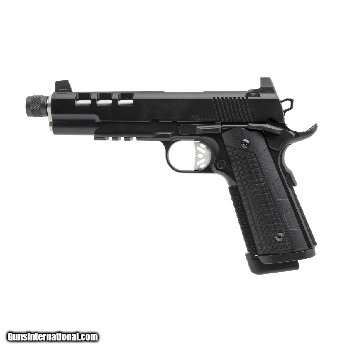 SN:1705263. Modern production. 9mm with a 5.75"" threaded match barrel. Bore is in excellent condition. Full size custom handgun. Metal is excellent. G10 grips are excellent. Has suppressor height sights and laser cut slide. Overall condition is excellent. Comes with 4 extra magazines. (CONSIGNMENT)
