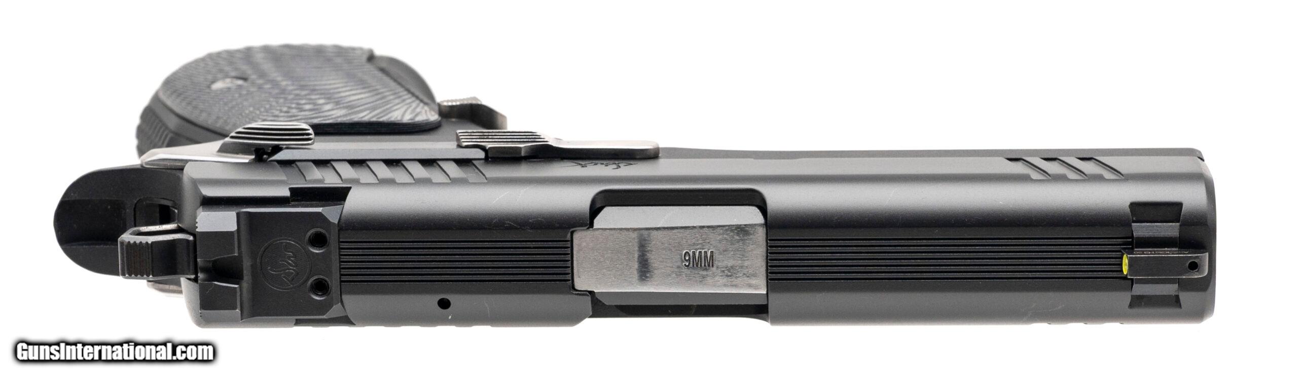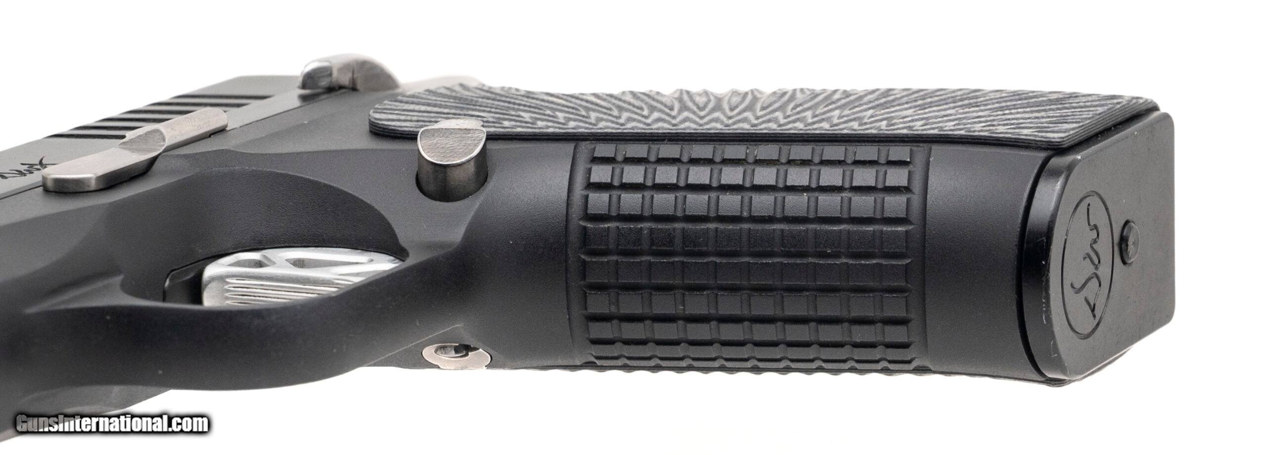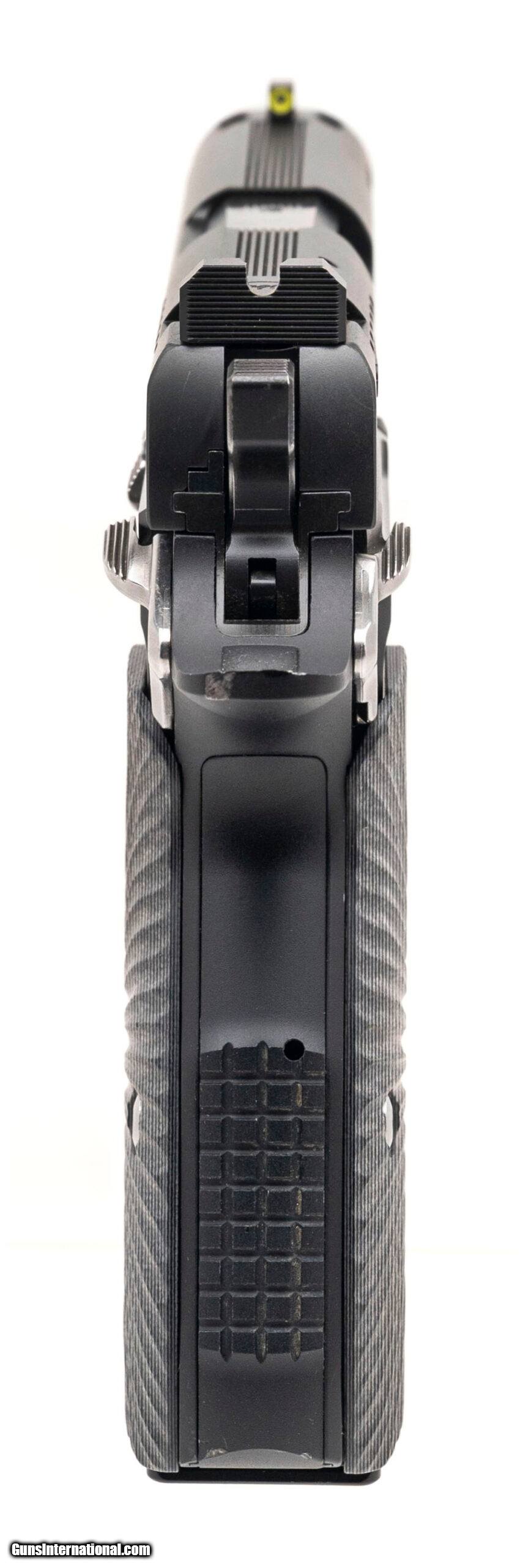 Description: "SN: X2201358. Modern production, 9mm with a 4"" match grade bull barrel. Bore is bright with strong rifling. Compact alloy frame double stack 1911 style pistol with stainless accents, g10 grips, and a tritium front sight. Near excellent condition overall. Comes with DW carry bag and an extra magazine. Price: $2,195.00 Contact Seller |