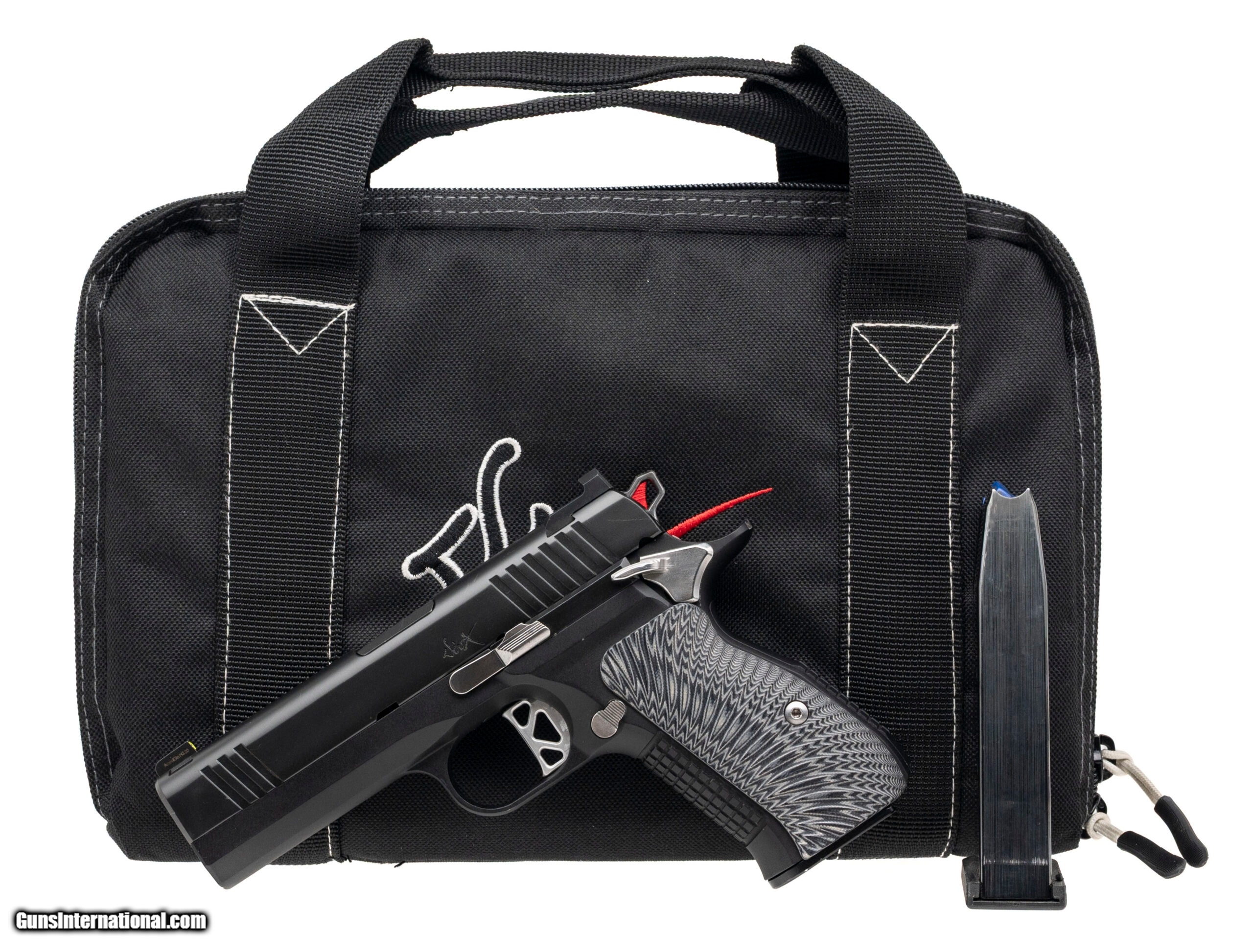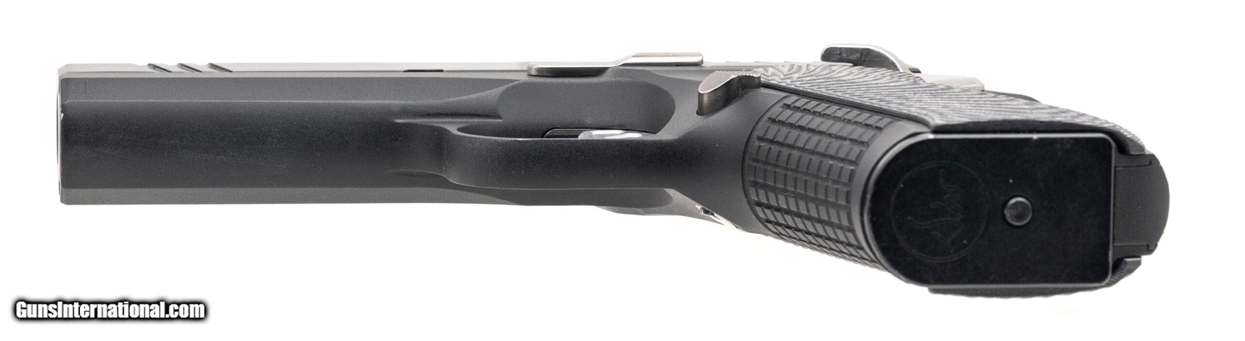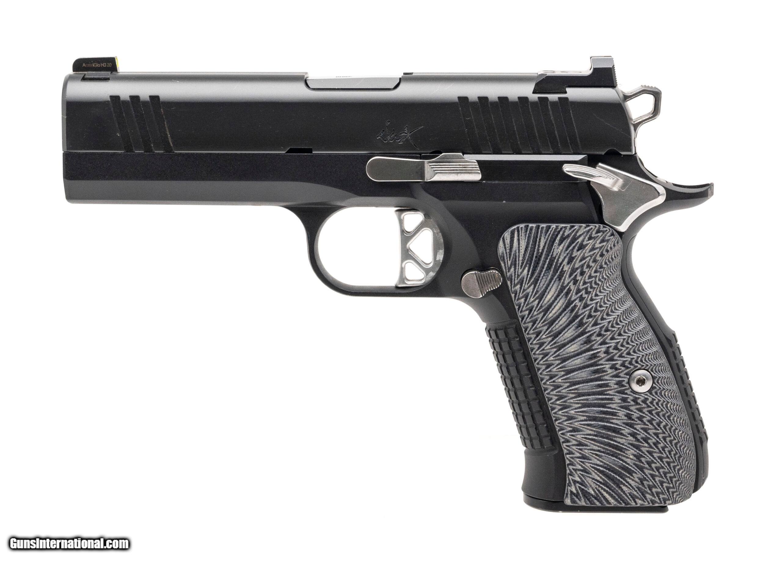Description: "SN: X2201358. Modern production, 9mm with a 4"" match grade bull barrel. Bore is bright with strong rifling. Compact alloy frame double stack 1911 style pistol with stainless accents, g10 grips, and a tritium front sight. Near excellent condition overall. Comes with DW carry bag and an extra magazine. Price: $2,195.00 Contact Seller |