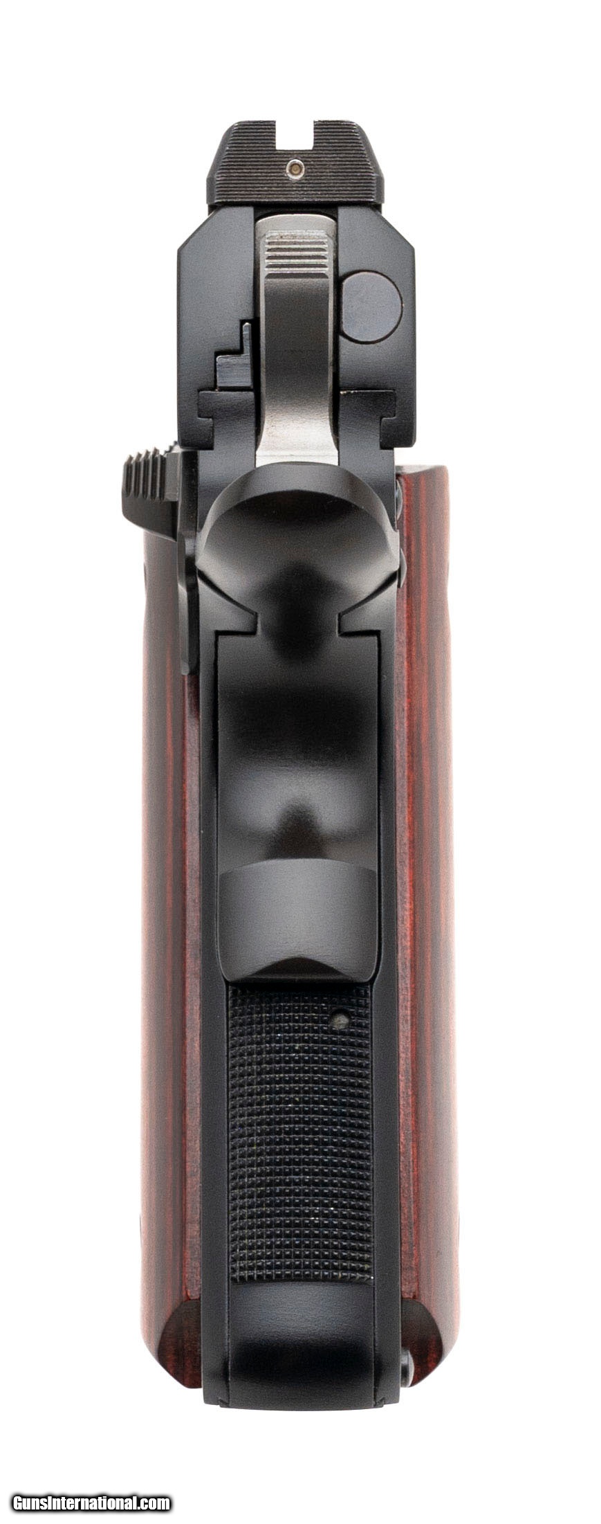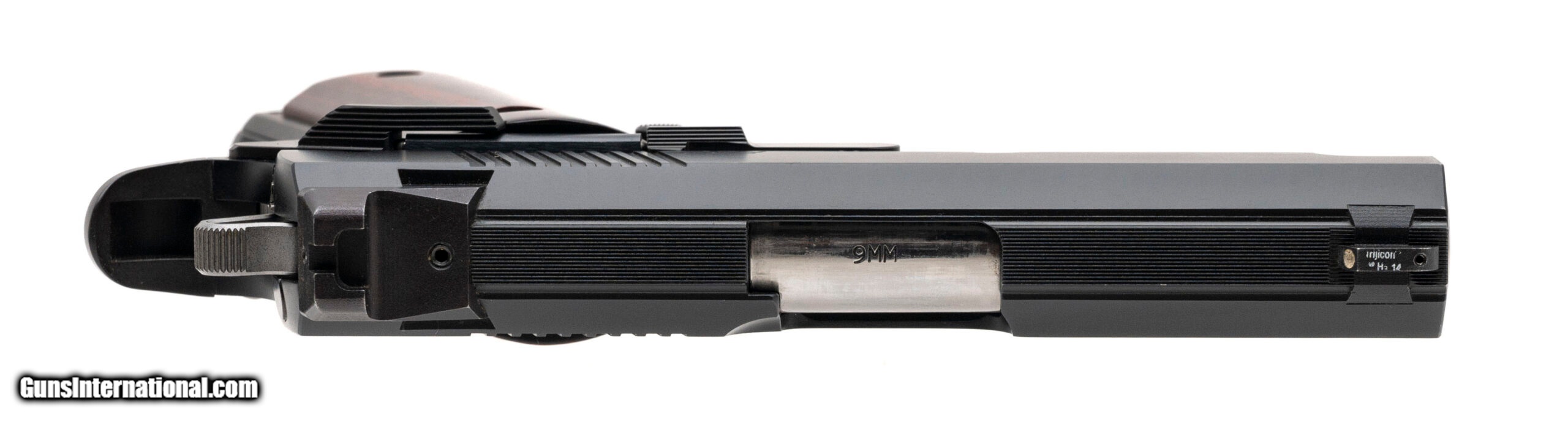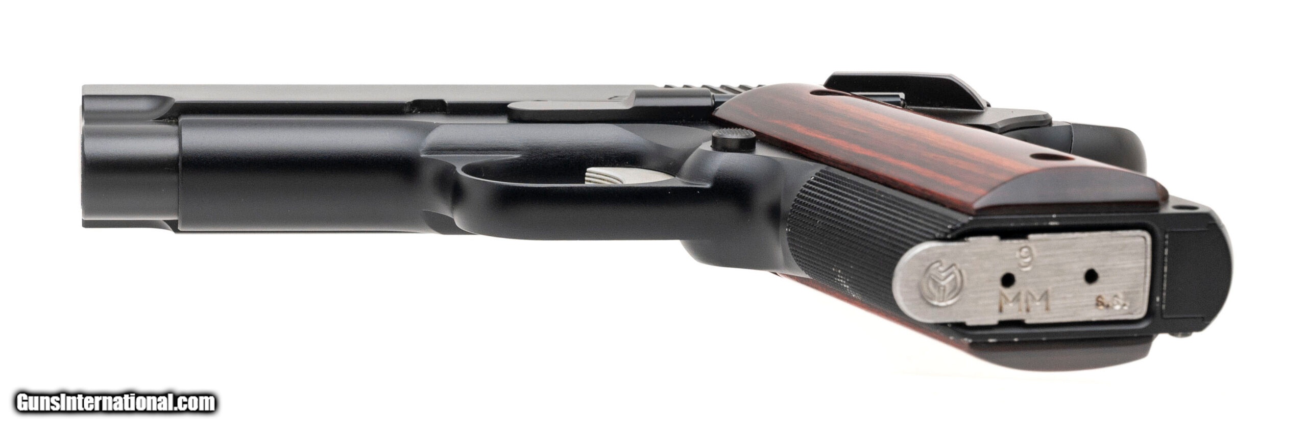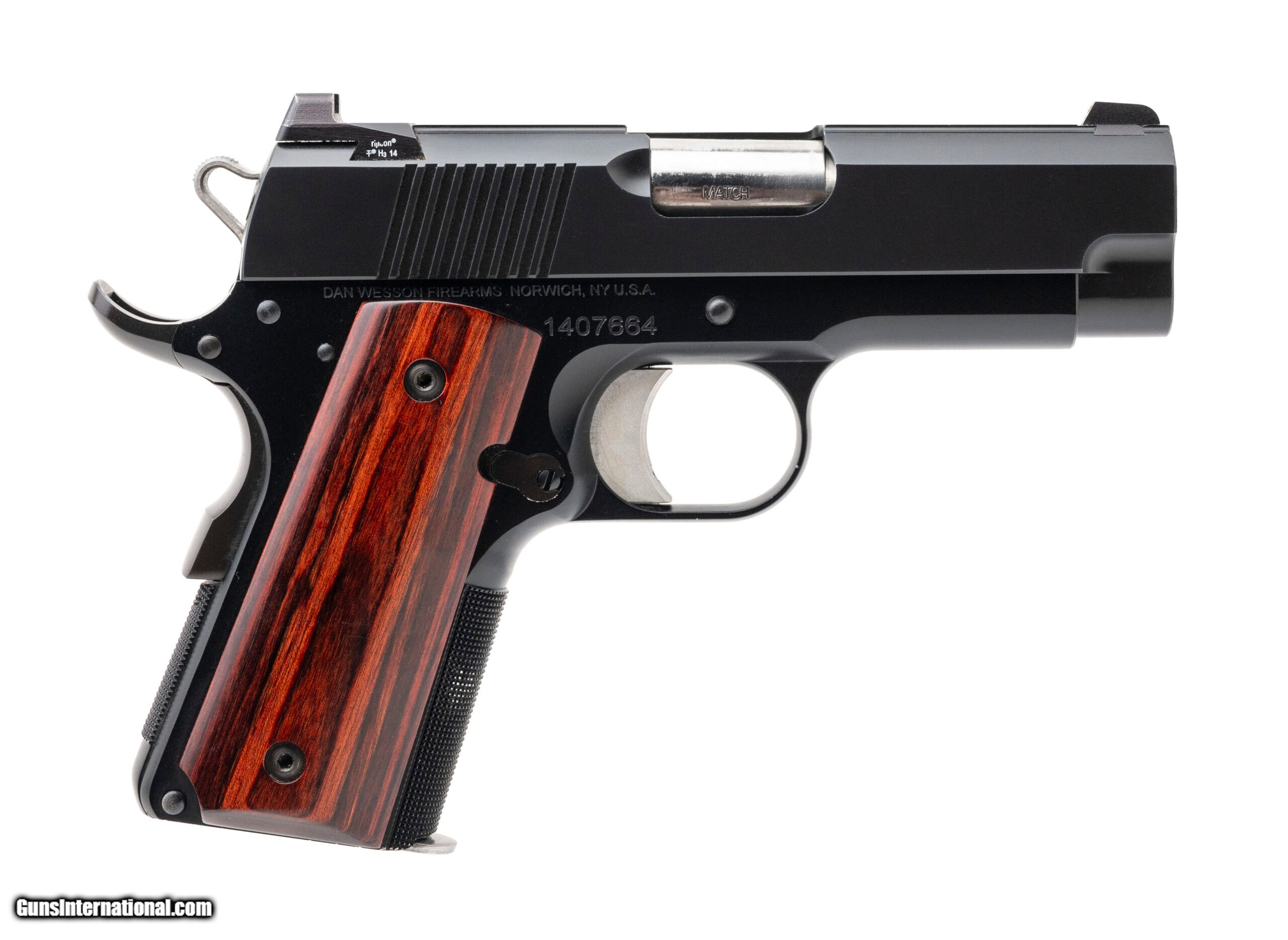 Description: "SN: 1407664. Modern production. 9mm with a 3.5"" match grade bull barrel. Bore is bright with strong rifling. Compact officers size 1911. Finish is in very good condition with minor handling wear. Wood grips are in excellent condition. Overall very good condition. SOLD |