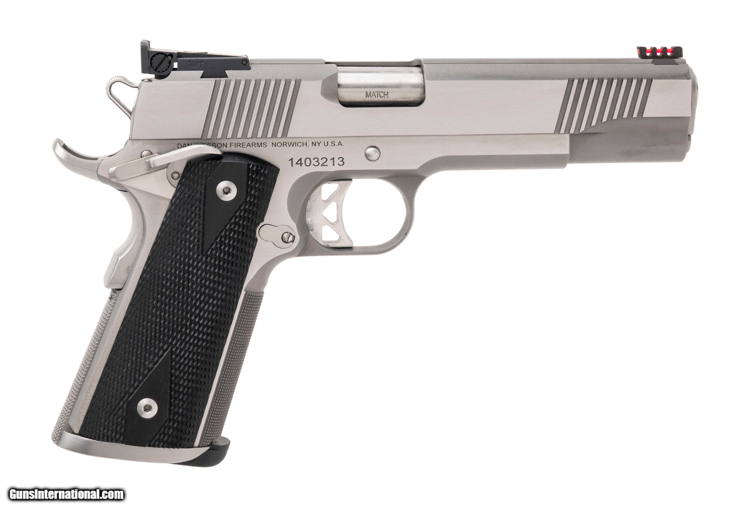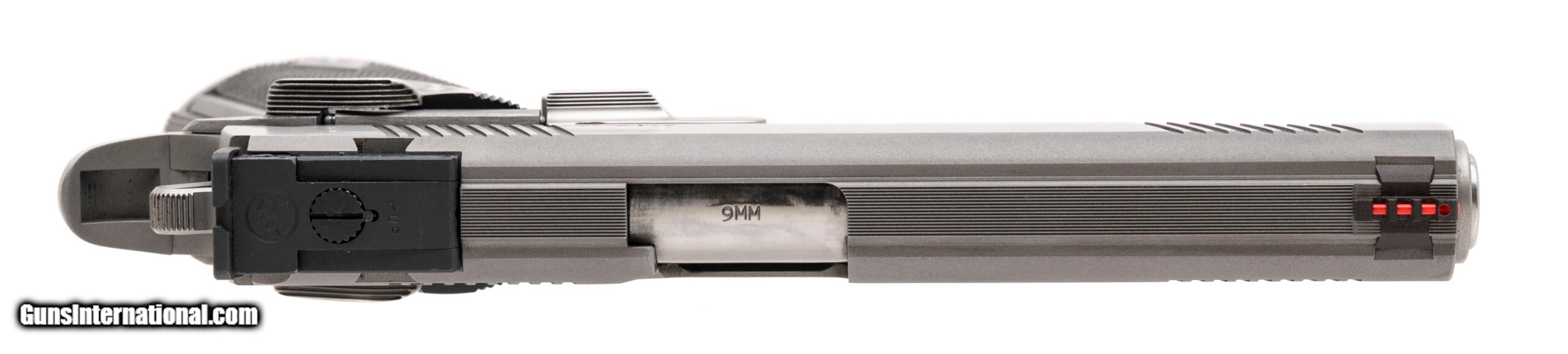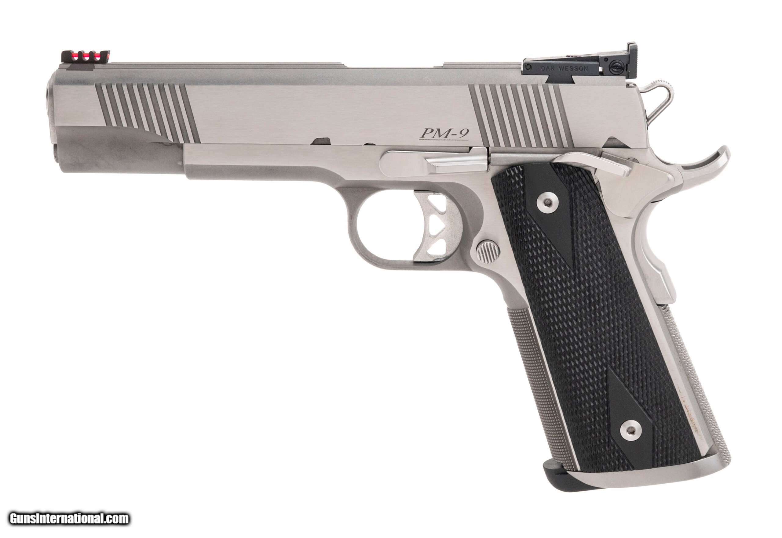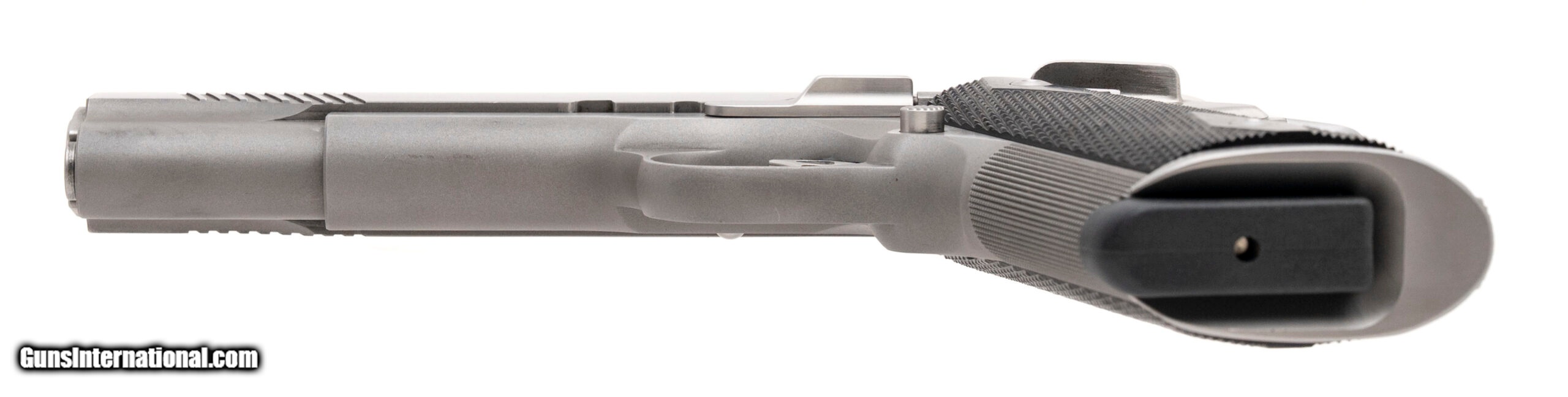 Description: "SN: 1403213. Modern production 9mm with a 5"" barrel. Stainless steel full size target 1911 with adjustable sights. Excellent condition with case and 2 extra mags. SOLD |