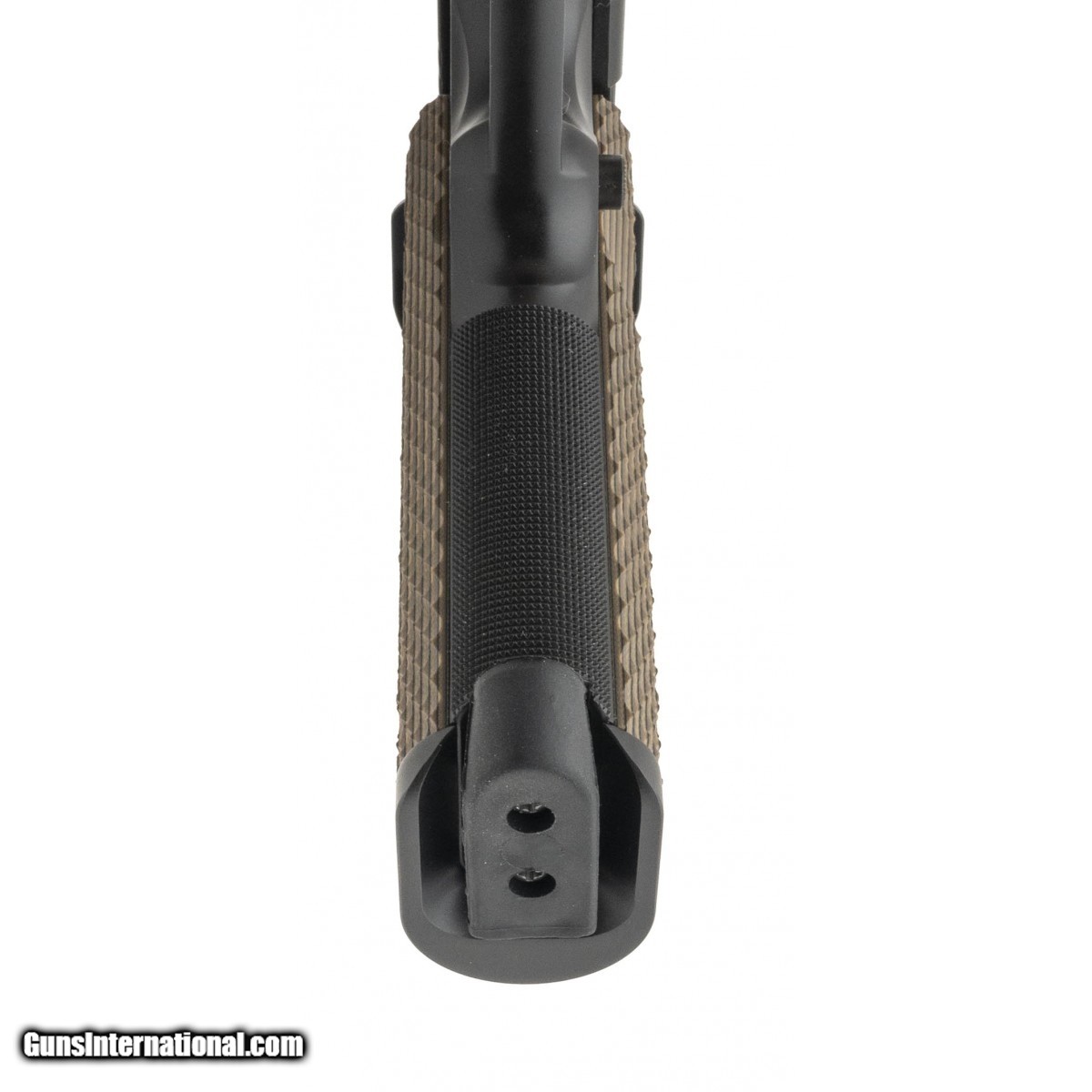 Description: " SN: 2204354. Modern production. 10mm with a 5"" barrel, bore is excellent. Full size 1911 with steel frame, black finish, 1913 rail, ambidextrous safety, AmeriGlo night sights and G10 grips. Overall excellent condition. Comes with box and extra magazine. SOLD |