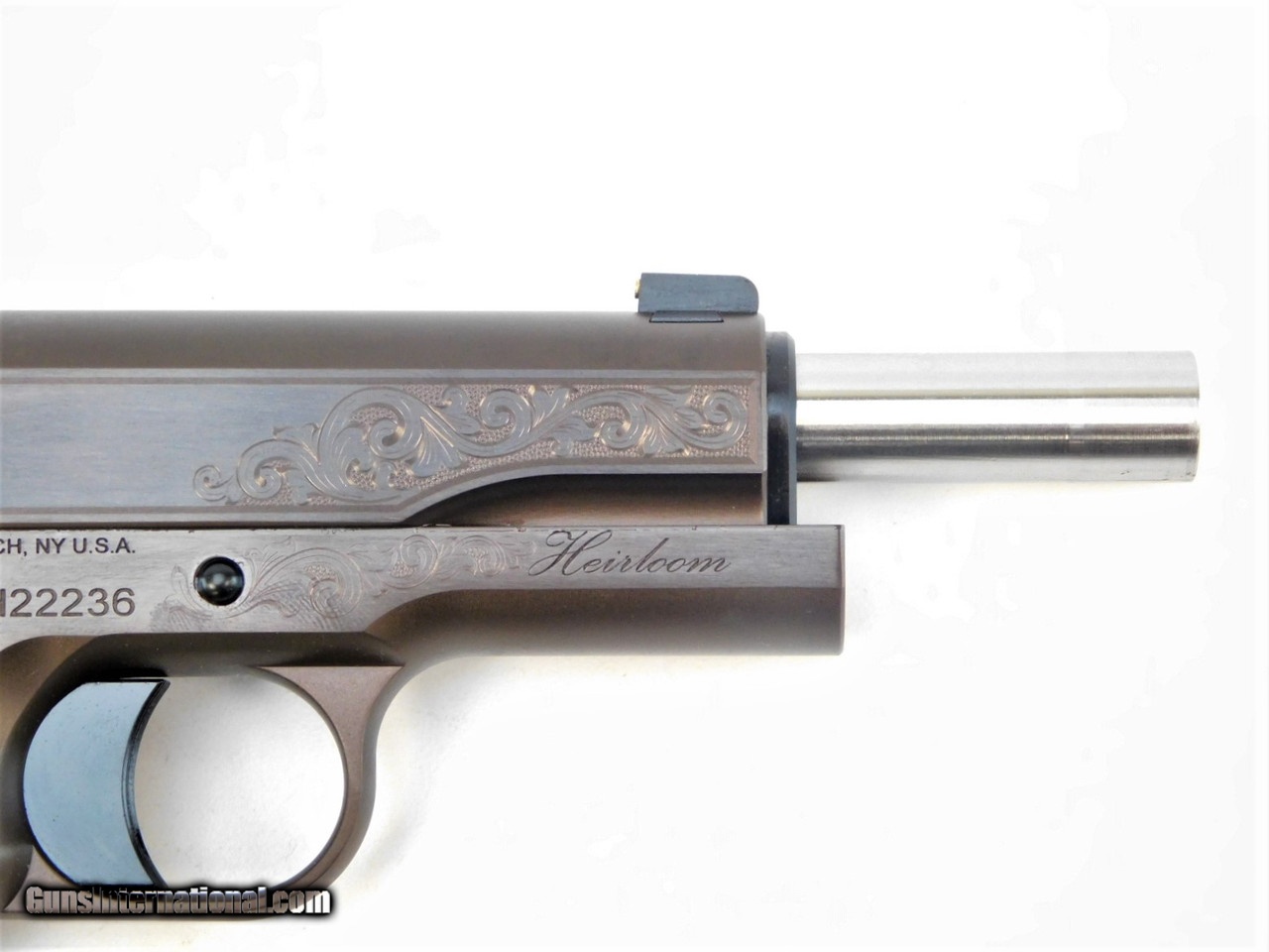 Description: Manufacturer: CZ-USA - Dan Wesson Model: Heirloom 2022 SKU:? 01937 Caliber:? .45 ACP Capacity: (2) 8 Round Magazines Barrel Length: 5" Finish: Bronze PVD Frame:? Steel Grips: Black G10 Overall Length:? 8.65" Sights: Rear U Notch, Front Brass Bead Weight: 40 oz Trigger:? Single Action Safety: Manual Thumb and Grip Safety All items are factory new in box unless otherwise stated. Based on the information available to us, the above specifications describe this item to the best of our knowledge. For further information, please contact or visit the manufacturer's . SOLD |