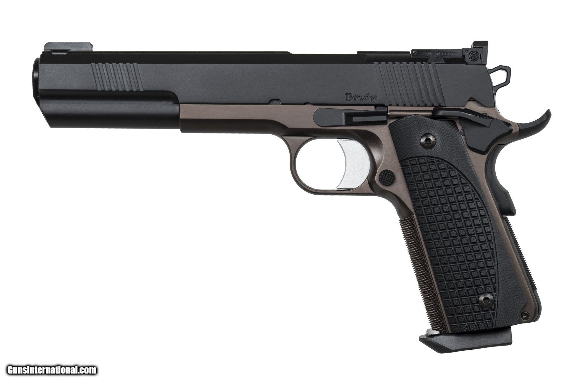 Description: BRAND NEW IN THE BOX AND READY TO SHIP! BUY IT NOW!! Manufacturer: CZ-USA / Dan Wesson Model: Dan Wesson Bruin Bronze SKU: 01881 Caliber: 10mm Capacity: 8 Rounds Barrel Length: 6.3" Frame: Forged Stainless, Bronze Slide: Black Duty Finish Overall Length: 9.7" Grips: G10 Sights: Tritium Fiber Optic - Front, Adjustable Night Sights - Rear Weight: 43.9 oz With more folks than ever choosing to hunt with a handgun and the continuing resurgence of the 10mm cartridge, we decided it was time to bring the heat. Our first long-slide 1911, the Bruin was born to hunt. The long slide means a long sight radius and the 6.3 inch barrel within allows full-power 10mm loads as much time as possible to use their powder charge. Fully adjustable tritium sights ensure when shooting hours arrive, you will be able to see the sights. Not only that, but we are using a tritium/fiber optic combo front sight to make sure the front glows day or night. KNOW YOUR LOCAL AND STATE LAWS!! ORDERS WILL ONLY BE ACCEPTED FROM US RESIDENTS OF THE LOWER 48 STATES, ALASKA AND HAWAII. OUR FFL CLASS DOES NOT ALLOW FOR THE EXPORT OF FIREARMS, THEREFORE WE CANNOT SHIP OUT OF THE US. IF YOU ARE INTERESTED IN PURCHASING THIS ITEM, PLEASE COMPLETE YOUR ORDER BY REFERRING TO THE "SELLER'S INFORMATION" ABOVE. SOLD |