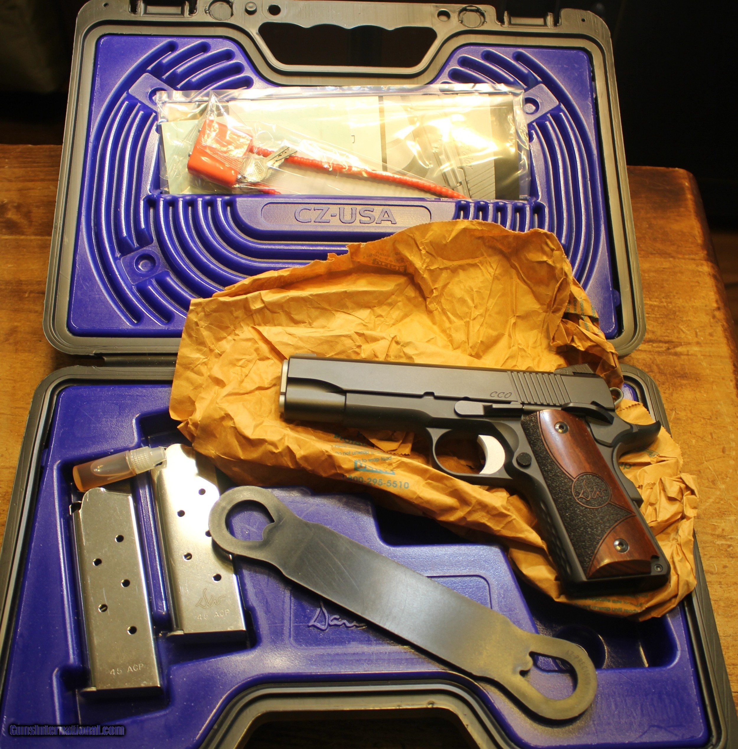 Description: Got a CZ-USA Dan Wesson Compact 1911 CCO 45 ACP 4.25" 7+1 Model 01962 Copied this from a Description from an internet wholesaler on this model.................. This model is built as a classic CCO, a Commander slide on top of an Officer frame. This combination provides the control and reliability of the Commander with the easy concealment of the Officer frame. With the proven stopping power of the .45 ACP in the two provided 7 round flush base magazines, you won't feel under gunned. To reduce the over all weight, the frame and mainspring housing are made from anodized aluminum. To help control recoil, they have included an undercut trigger guard and their new "Chain link" pattern on the front strap and mainspring housing. The slide and small parts are coated in the same "Duty" coat that's used on the Valor. Like all of their night sight models you will find dual colored Tritium lamps for faster low light target acquisition and a white target ring on the front to aid in front sight concentration. The CCO wears a medium length trigger shoe to facilitate faster draws and better fit in the hand. The gun is rounded out with their stippled shadow grips. Like all Dan Wesson models this gun is both beautiful and functional. Specifications Type Pistol Action Single Caliber 45 ACP Barrel Length 4.25" Capacity 7+1 Safety Thumb and Grip Grips Stippled Shadow Sights Fixed Tritium Night Sights Weight 1.72 lbs Finish Black End of copy from that internet wholesaler Look closely at the pictures. The firearm comes with what you see in the pictures. Lint included. Listed as USED but is a safe queen that there is a very good chance the only firing was done by Dan Wesson. This came from the estate of an FFL/SOT Gun Smith, Gun Store that is out of business. This is or was inventory. There will be countless other listings from this inventory over the next 4 to 5 years. We are selling for the store. This is NOT a liquidation. There are no lists and will be no lists. Just keep checking the other listings You are welcome to ask questions and ask for additional pictures Please check our other listings for the items. NOTE: Look close at the pictures posted As is means AS IS. There is no refund You are welcome to check out our webpage or facebook page at P&T Partners Shipping is included. Shipping is NOT FREE, just included for UPS Next Day Air with Full Insurance Price is for Certified Funds meaning Certified Check or USPS Money Orders Credit or Plastic in any form, shape or manner add 3% NOTE: Credit by PHONE only and add 3.5% for Credit I post on many of the firearms forums as PT-Partners. This is an FFL to FFL Transaction, as PT-Partners is a retail/FFL Dealer. For those that are local, there is no Face To Face. On Line means On Line General Information: FFL (Federal Firearms License) is required. Be prepared to obtain a copy of your local FFL holders license. For all in states where the local laws restrict this type of firearms, DO NOT BUY. If your local laws restrict the magazine capacity, again do not buy. I have no idea if this is a California Qualified Handgun, but I do ship to CA if you check other listings and something fits CA DOJ. If you are CA and you can PROVE, and your RECEIVING FFL contacts me, I will ship this to CA SOLD Handgun Caliber: .45 ACP (.45 Auto) |