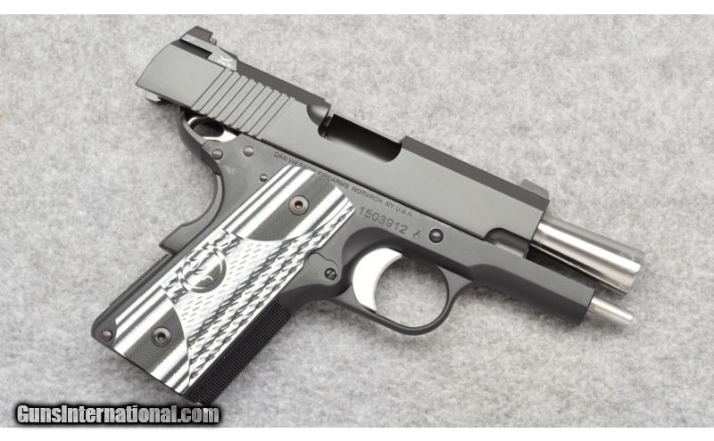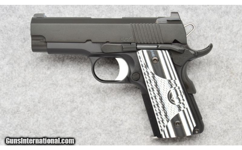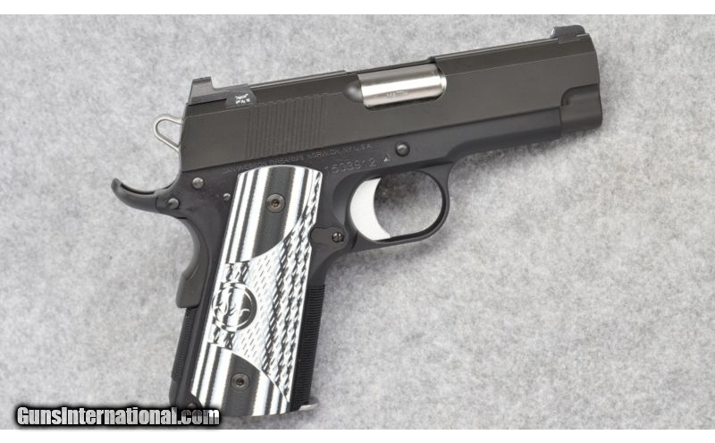 Description: Dan Wesson 1911 ECO in 9mm Luger. Officer size 1911 with allow frame, 7 Rd. capacity, 3.5 Inch match grade barrel with full length guide rod..Black Duty Finish. Factory blem with carton,paperwork. SOLD Caliber Info: 9mm Luger Metal Condition: Excellent Bore Condition: Excellent Barrels: 3.5 Inch, Flush Cut with Target Crown Triggers: Adjustable Stock: G-10 Panels Weight: 25 Ozs Sights: Dovetailed Trijicon Front and Rear Sight Item Location: Buda, TX |