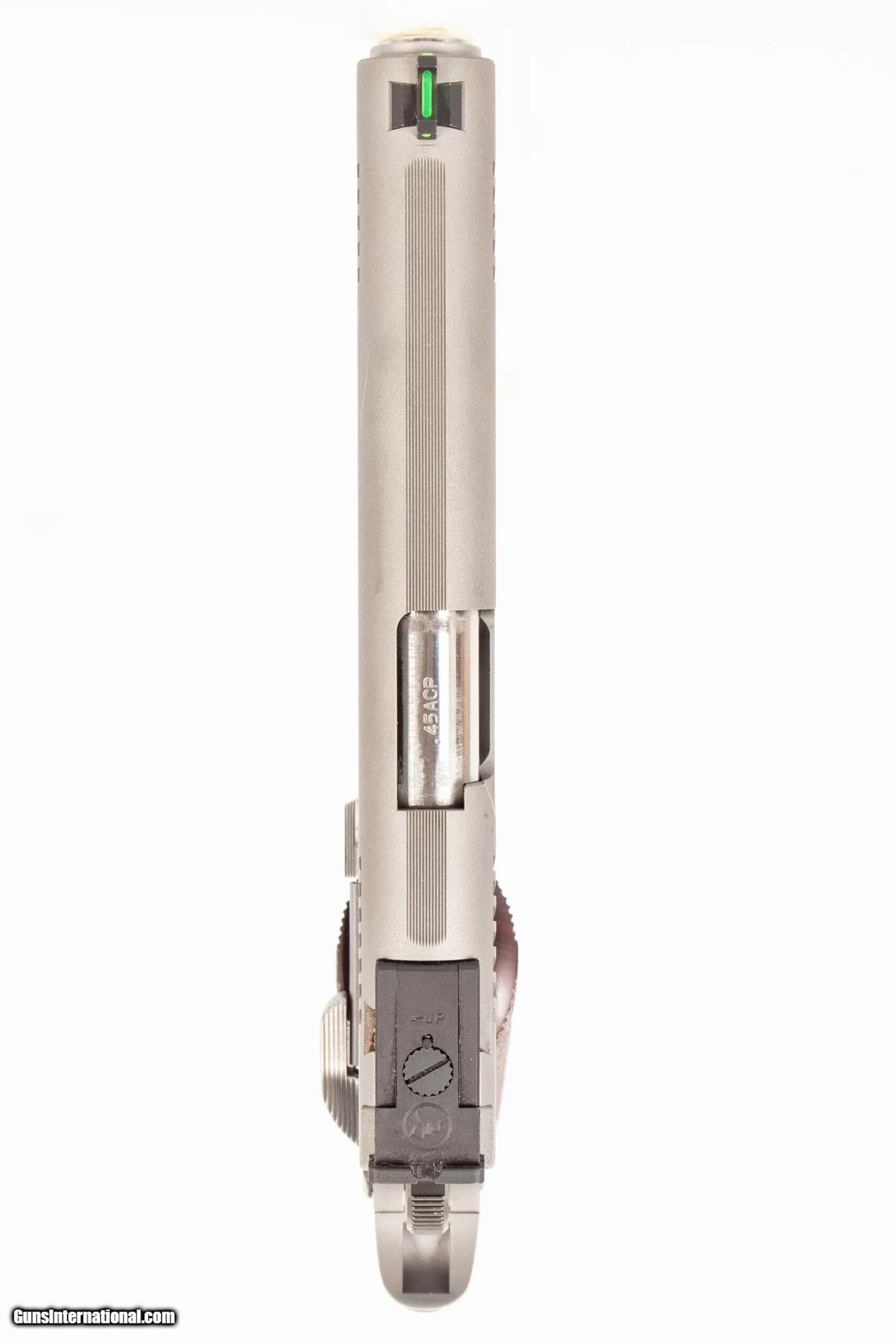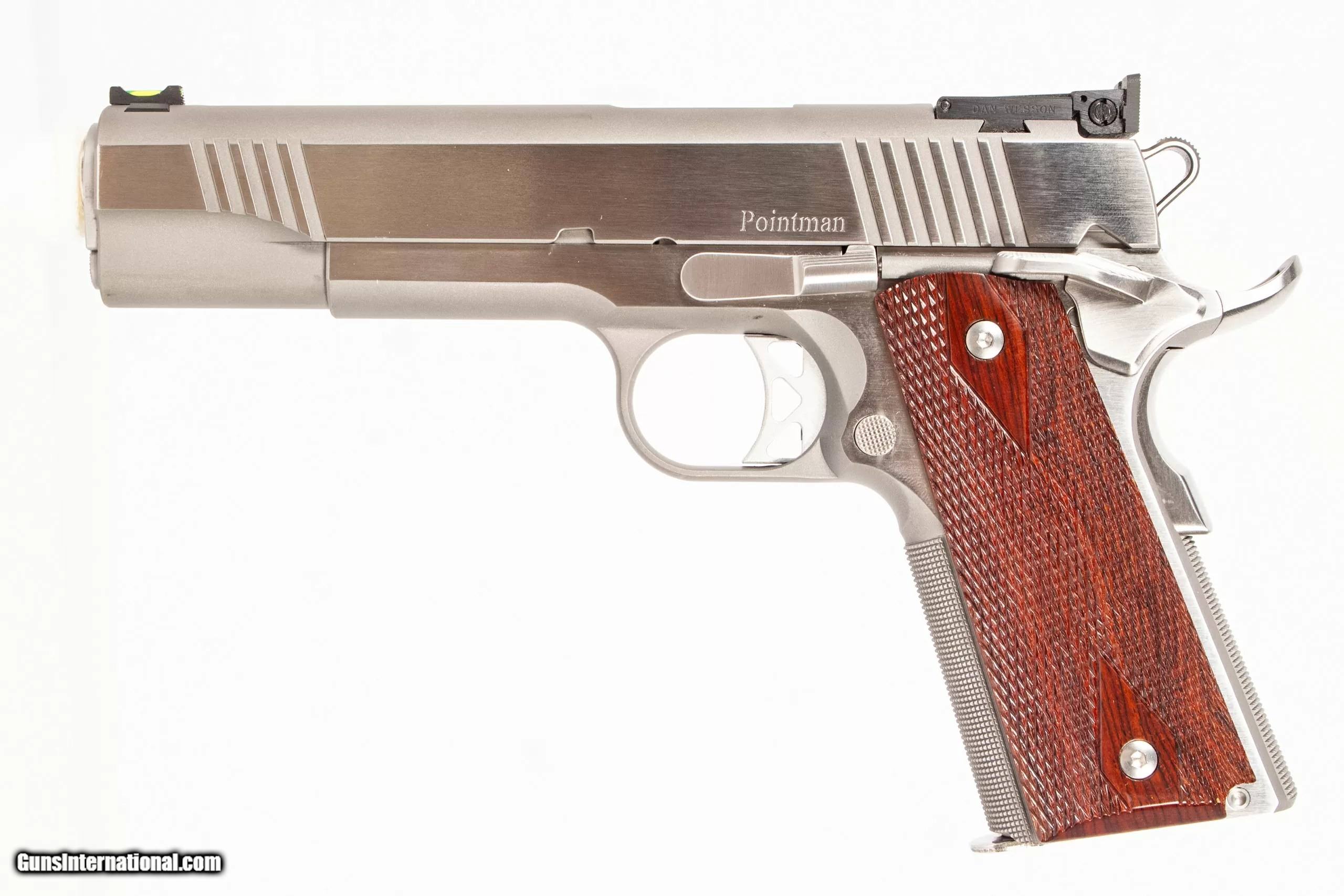 Description: Dan Wesson 1911 Pointman chambered for .45 ACP in a polished stainless finish with government profile, dual slide serrations, adjustable sights, skeleton hammer, and front and back strap stippling. Includes soft case and box. Action appears to be in fine working order and bore bright with sharp rifling. The NRA grading condition for this USED firearm is Very Good. We ship domestically in the United States. Additional shipping rates apply to Alaska and Hawaii. Dury’s Lifetime Warranty: All firearms purchased from Dury’s Gun Shop, NEW or USED, are covered by a lifetime warranty. We will repair or replace, at our discretion, any firearm purchased from Dury’s Gun Shop, Inc. for as long as it is owned by the purchaser. This warranty is not transferable. WE BUY GUNS! NO COLLECTION TOO BIG OR SMALL FOR OUR GUNS INTERNATIONAL CUSTOMERS ALL OF OUR FIREARMS CAN BE PURCHASED DIRECTLY FROM OUR DURY’S GUNS SITE ! SOLD Manufacturer: Dan Wesson Arms Model: Pointman Caliber Info: 45 ACP Barrels: 5inches |