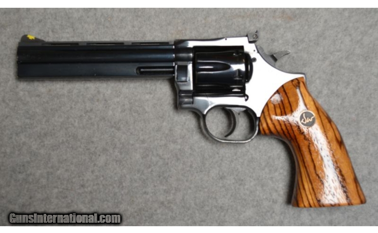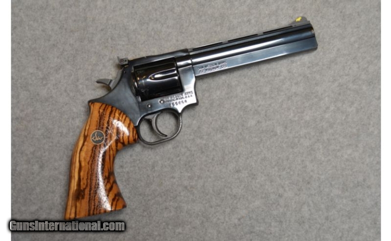Description: SOLD Manufacturer: SN:155654 Caliber Info: .357 Magnum Metal Condition: Very Good Wood Condition: Excellent Bore Condition: Bright With Sharp Rifling Barrels: 6 Triggers: Double Action Stock: Wood grips Weight: 2 lbs. 12 ozs. Sights: Front Ramp, Rear Adjustable sight Item Location: Hazelwood, MO |