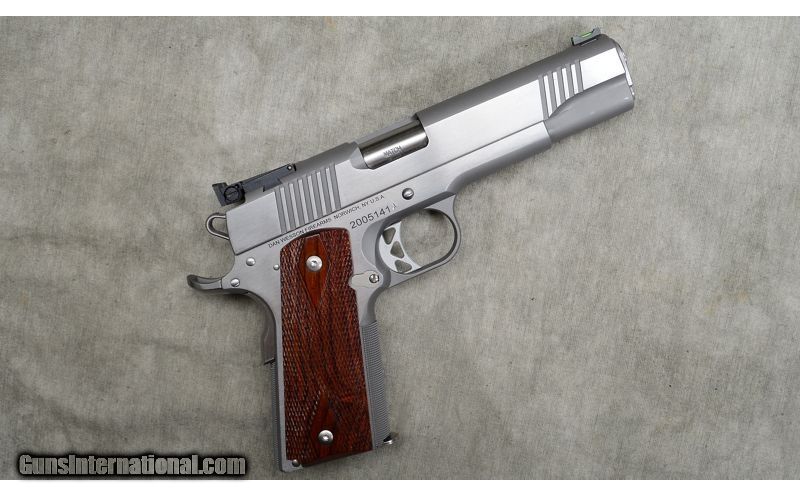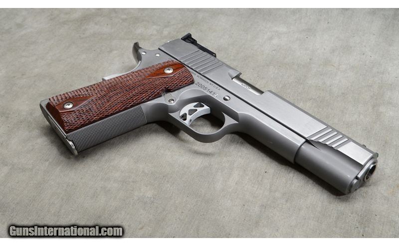 Description: The Pointman 45 features include stainless steel exterior parts, 8-round magazine, aggressive checkering on coco-bolo stocks and adjustable sights. .45 ACP SOLD Chambers: 8 + 1 capacity Metal Condition: LNIB. Wood Condition: LNIB. Bore Condition: LNIB. Barrels: 5 inch Match stainless Triggers: Factory single action trigger. Weight: 39 oz Sights: Fiberoptic bead and adjustable notch open sights. Item Location: Rogers |