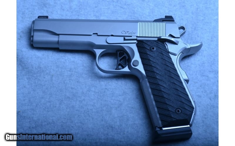 Description: With quality improvements to make this Dan Wesson flagship better than ever, the new and updated Valor features a Stan Chen SI Magwell, tapered G10 grips, and a tactical ambidextrous and grip safety. The features don't stop there; the Valor now comes with an inverted rib, and an updated slide stop that allows for laser grip panels. Sitting atop the slide are a serrated U-notch rear sight and a front tritium with a large orange ring, while GI-style cocking serrations give it a classic look. Our new inset serrations not only knock down any glare from the top of the slide — they also look great! Complete with a stunning, stainless steel slide and frame .45 ACP SOLD Chambers: .45 Auto Metal Condition: New in box Bore Condition: New in box Barrels: 5" Match Triggers: Flat K style Butt Pad: Tapered G10 grips Weight: 2 lbs 4 oz Sights: U-notch rear sight / Front tritium with large orange ring Item Location: Grandville, MI |