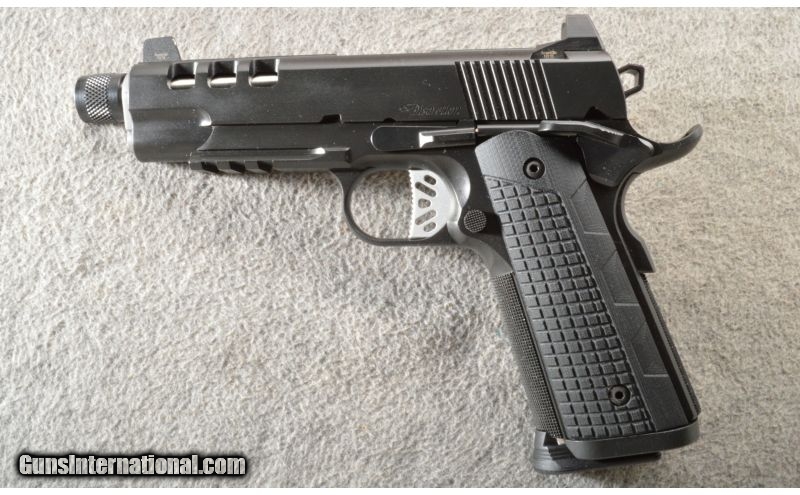 Description: With suppressors becoming more and more mainstream, the Discretion’s match-grade stainless barrel is extended and threaded to make it a ready host. Its aggressively-ported slide, serrated trigger and competition-inspired hammer give it a look all of its own, making it stand out in our line of 1911s. High tritium sights allow for sighting over the top of most pistol suppressors, with a rear designed so that the slide can be racked on a belt if using the pistol one-handed. SOLD Manufacturer: 2018 Caliber Info: .45 ACP Chambers: Semi-Auto 8+1 Metal Condition: As new in case. Wood Condition: The grips are as new in case. Bore Condition: As new in case. Barrels: Match-grade stainless with a threaded muzzle. Triggers: Long Slotted Trigger Stock: G10 Grips. Weight: 42 Oz. Sights: High Fixed Night Sight, Extras: Comes in the factory case with an extra mag, takedown tool, lock and the factory paperwork. Item Location: Tulalip, WA |