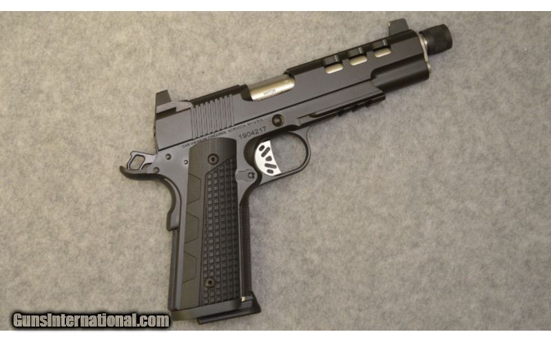 Description: This is a Dan Wesson Discretion, a semi-automatic 1911 style pistol chambered in .45 ACP. This pistol has a 5 1/2" barrel, measuring 9 1/2" overall, weighing 43oz. It has high night sights on the front and rear, G10 black grips, a square hammer, a rib on top of the slide, a Picatinny rail making it easy to mount accessories, and a threaded barrel designed to attach a suppressor. This Discretion has a traditional 1911 look with the squared butt, manual thumb safety, and grip safety as well. The threaded barrel, ported slide, checkering grip, and skeletonized serrated trigger give it more of a tactical look. Coming with the factory case, and two magazines. The only wear to this gun is on the magazine, and on barrel, which are extremely minor. SOLD Manufacturer: Newer production. Caliber Info: .45 ACP. Chambers: Semi-automatic. Metal Condition: Excellent. Wood Condition: Excellent. Bore Condition: Excellent. Barrels: 5.5" barrel with sights, 9.5" overall. Triggers: Single stainless, serrated, skeletonized trigger. Stock: G10 black grips. Stock Dimensions: Traditional 1911 square butt. Fore End: Receiver has 1913 Picatinny rail. Weight: 43oz. Sights: High night sights on the front and rear. Extras: Comes with factory box, and two magazines. Item Location: Huntsville, AL |