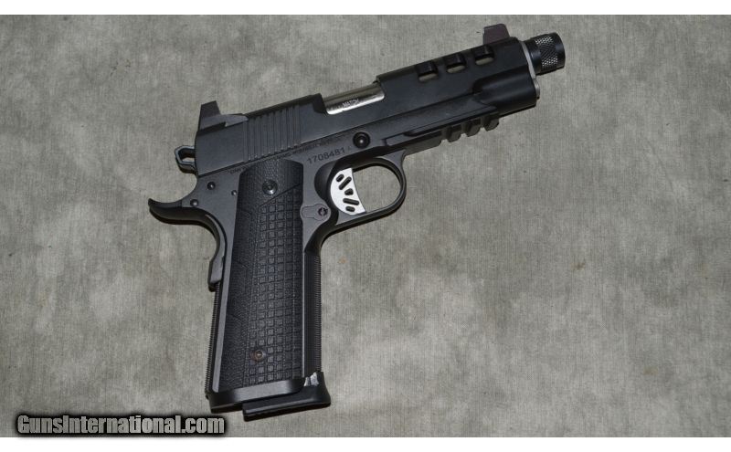 Description: Features include 5.75 inch barrel with threaded muzzle, 10 round magazine, stainless steel frame, G10 grips, high night sights, and thumb and grip safeties. SOLD Caliber Info: 9 MM. Chambers: 10 shot detachable magazine. Metal Condition: LNIB. Wood Condition: LNIB. Bore Condition: LNIB. Barrels: 5 -3/4 stainless match barrel. Triggers: Factory trigger for single action. Stock: G10 grips. Weight: 42 oz. Sights: High night sights. Extras: Case, factory papers and one magazine total. Item Location: Rogers,, MN |