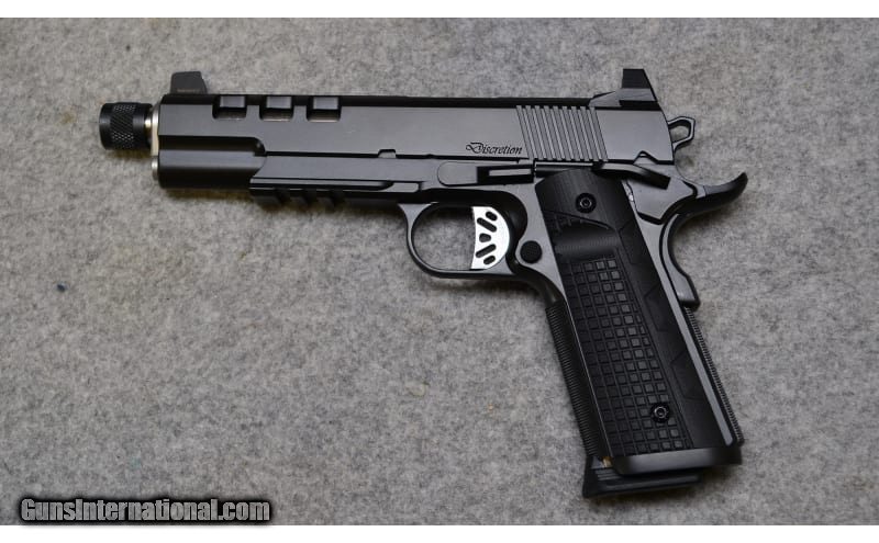 Description: With suppressors becoming more and more mainstream, the Discretion's match-grade stainless barrel is extended and threaded to make it ready to host. Its aggressively-ported slide, serrated trigger and competition-inspired hammer give it a look all of its own, making it stand out. High tritium sights allow for sighting over the top of most pistol suppressors, with a rear designed so that the slide can be racked on a belt if using the pistol one-handed. .45 Auto SOLD Barrels: 5.0 Weight: 2 lbs 4 oz Item Location: Hammond, IN |