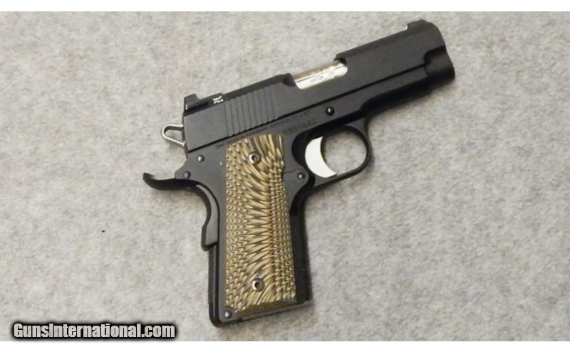 Description: The Dan Wesson is a anodized aluminum and features an undercut trigger guard. Its barrel is a flush-cut ramped bull with target crown, while the lightweight slide has tritium night sights. The recoil system uses a one-piece guide rod and a flat recoil spring. The ECO also has rounded bottom corner, grip safety, and G10 grip. This model has a 3.5 barrel, with an all-black duty finish. Comes with hard case and two magazines. SOLD Caliber Info: .45 Acp. Chambers: Semi auto. Metal Condition: Very good. Wood Condition: Very good. Bore Condition: Very good. Barrels: 4" stainless steel match barrel. Triggers: Single trigger for single action semi automatic fire. Stock: G-10 grips. Weight: 32oz. Sights: Trijicon night sights. Item Location: Acworth, GA |