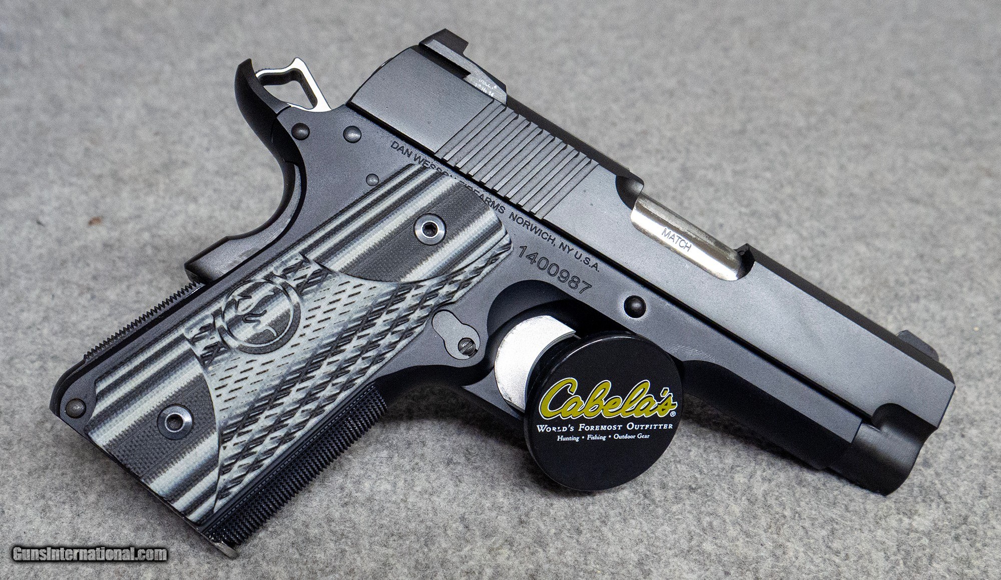 Description: This Dan Wesson ECO (Elite Carry Officer) pistol is in overall excellent condition. Minor spots of wear around the grip checkering. Factory case and a total of two magazines are included. .45 ACP SOLD Chambers: .45 ACP Metal Condition: Excellent Bore Condition: Excellent Barrels: 3.5" Barrel Triggers: SAO Butt Pad: G10 Grips Sights: Two-Dot Tritium Sights Item Location: Greenville, SC |