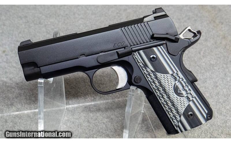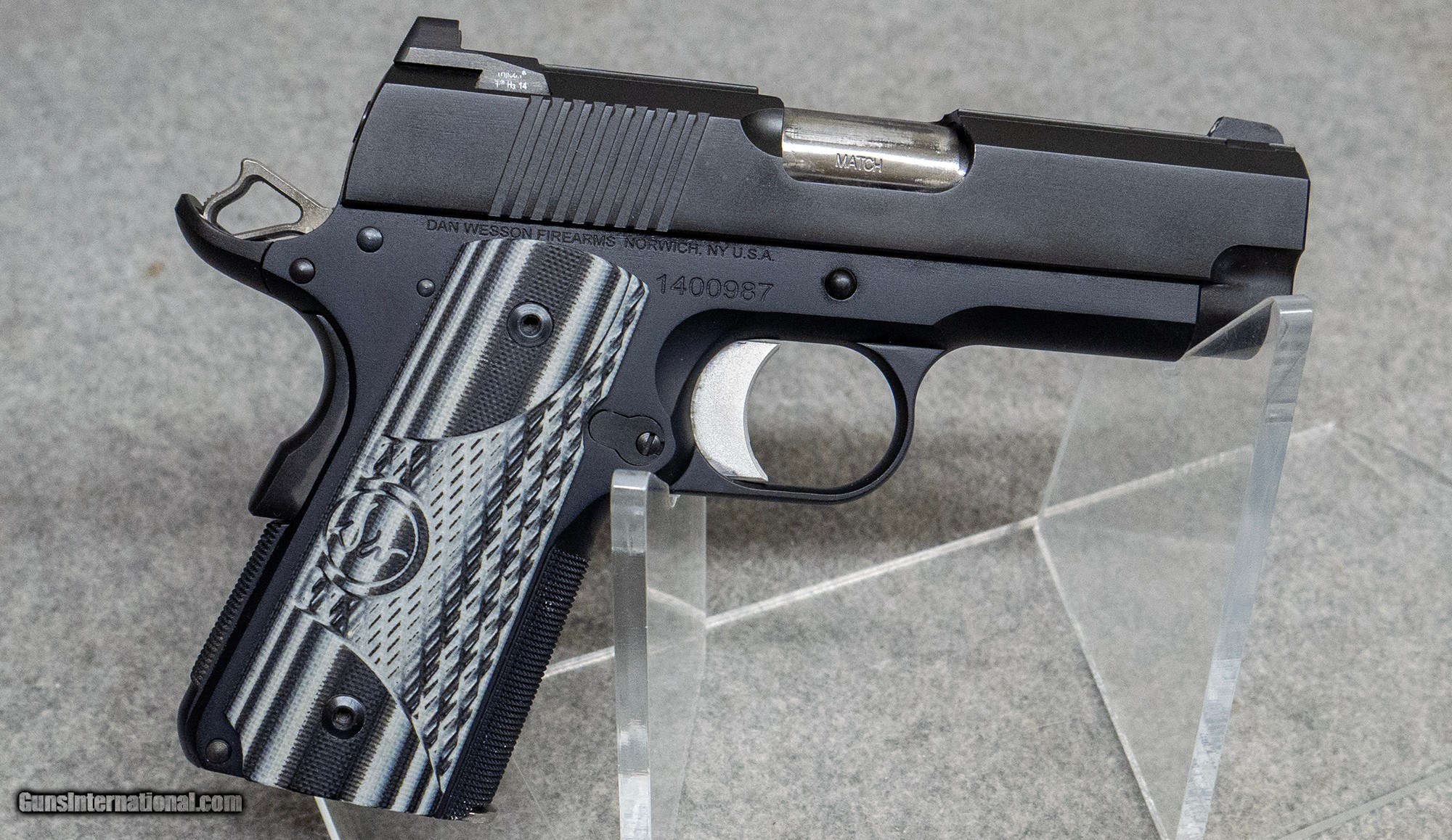 Description: This Dan Wesson Elite Carry Officer (ECO) is in overall very good condition. Very light freckling on left side of slide. Original factory case included. .45 ACP SOLD Chambers: .45 ACP Metal Condition: Very Good Bore Condition: Very Good Barrels: 3.5" Barrel Triggers: SAO Butt Pad: G10 Grips Sights: Two-Dot Tritium Sights Item Location: Greenville, SC |