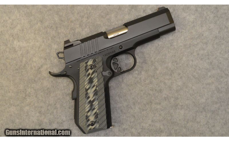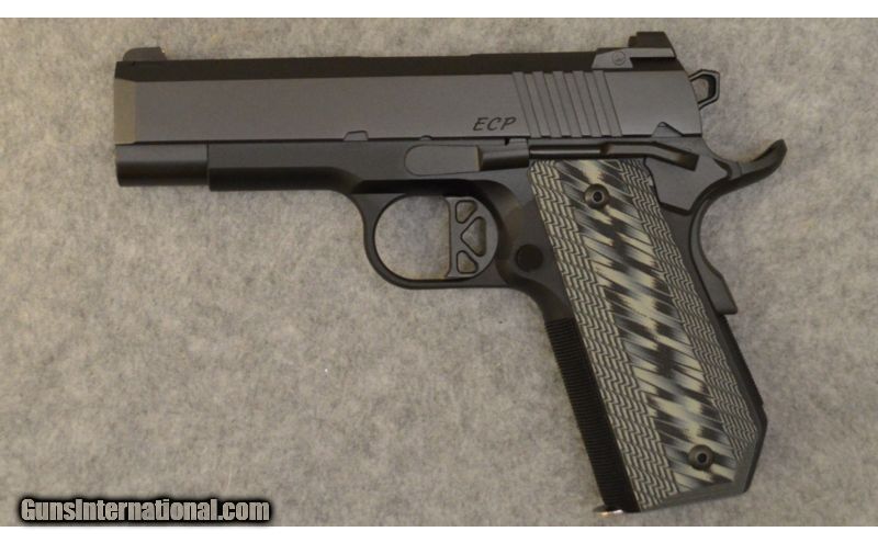 Description: This is a Dan Wesson ECP (Enhanced Commander Pistol), a 1911 style semi-automatic pistol chambered in .45 ACP. This is an excellent choice for a carry gun due to its sleek frame, compact size, and sturdy grip. It's also a great gun to take to the range to have a little fun with target practice. It has a 4" barrel, measuring 7 3/4" overall and weighing right below 2lbs at 29oz. It has a U sight for the rear and a brass bead for the front sight, a skeletonized flat trigger, and gray and black G10 grips. The top rib helps with any glare issues, and has a manual thumb and a grip safety. The slide is stainless steel sitting on an aluminum frame. Overall this pistol is in excellent condition with no visible wear. This was a pistol sent from the manufacturer for a "factory blemish." It comes with the factory case and two magazines. SOLD Manufacturer: 2019 (Serial 1906XXX) Caliber Info: .45 ACP. Chambers: Semi-automatic. Metal Condition: Excellent. Wood Condition: Excellent. Bore Condition: Excellent. Barrels: 4" barrel, 7 3/4" overall length. Triggers: Single skeletonized flat trigger. Stock: G10 gray and black grips. Weight: 29oz. Sights: U notch rear sight and brass bead for the front sight. Extras: Comes with the factory case and magazines. Item Location: Huntsville, AL |