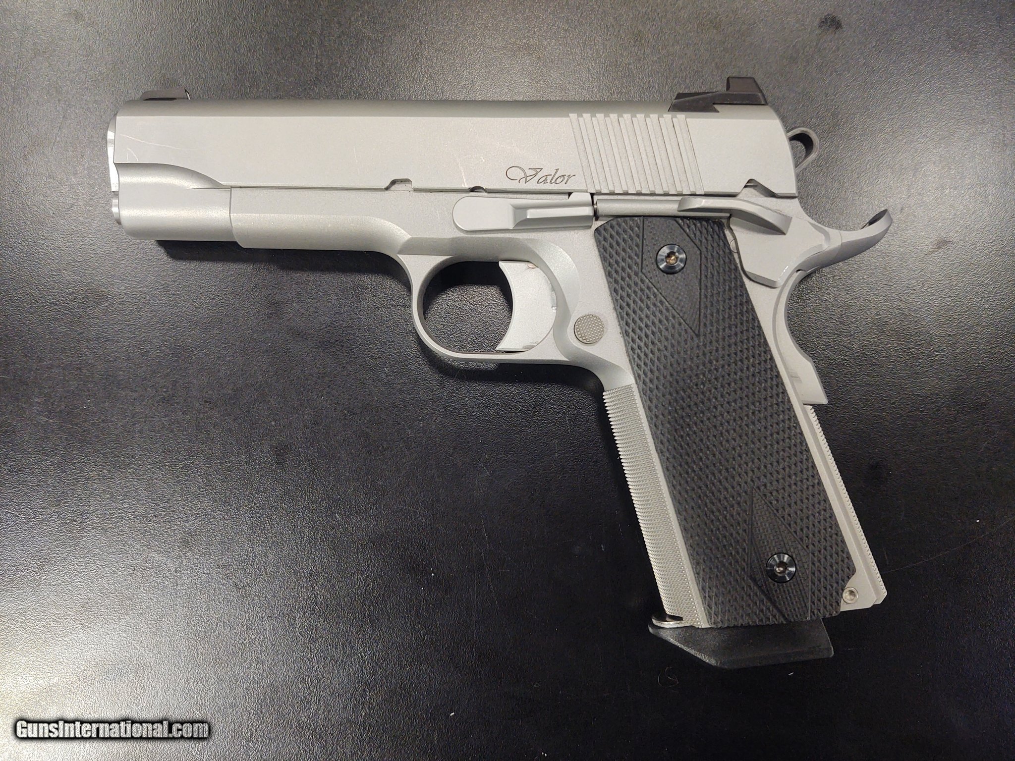Description: Guns Listing ID: 494828 Original case with 2 magazines SOLD Manufacturer: DAN WESSON FIREARMS Model: VALOR Caliber Info: .45 ACP Condition: Used - Non-Certified Barrels: 4.5 BARREL Finish: matte stainless |