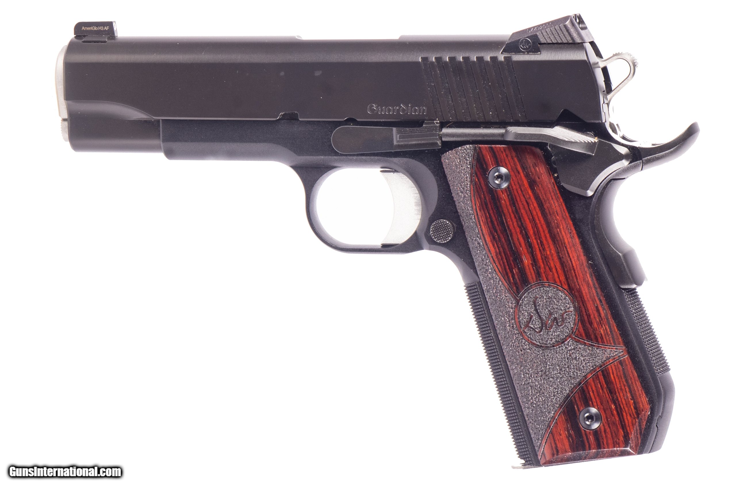 Description: Dan Wesson Guardian chambered in 45ACp with a 4½ inch barrel, mirror-shine bore with immaculate rifling. This pistol comes with a box, soft case, 1 extra magazine, and features a carry cut to the grip. The NRA grading condition for this USED firearm is Excellent. We ship domestically in the United States. Additional shipping rates apply to Alaska and Hawaii. Dury's Lifetime Warranty: All firearms purchased from Dury’s Gun Shop, NEW or USED, are covered by a lifetime warranty. We will repair or replace, at our discretion, any firearm purchased from Dury’s Gun Shop, Inc. for as long as it is owned by the purchaser. This warranty is not transferable. WE BUY GUNS! NO COLLECTION TOO BIG OR SMALL FOR OUR GUNS INTERNATIONAL CUSTOMERS ALL OF OUR FIREARMS CAN BE PURCHASED DIRECTLY FROM OUR DURY'S GUNS SITE ! SOLD Manufacturer: Dan Wesson Arms Model: Guardian Caliber Info: 45 ACP Barrels: 4inches |