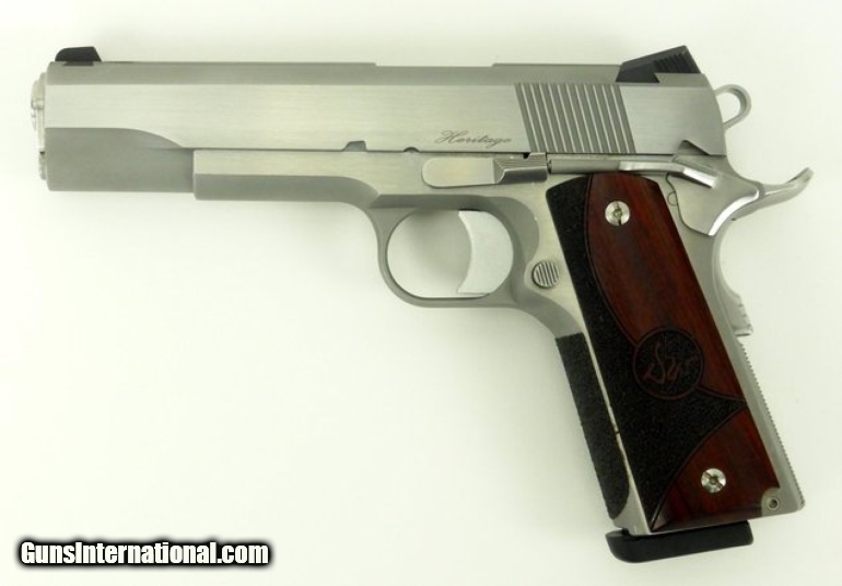 Description: Dan Wesson Heritage .45 ACP caliber pistol. Razorback model with top slide serrations, front night sights, extra magazine and box. Excellent condition. SOLD |