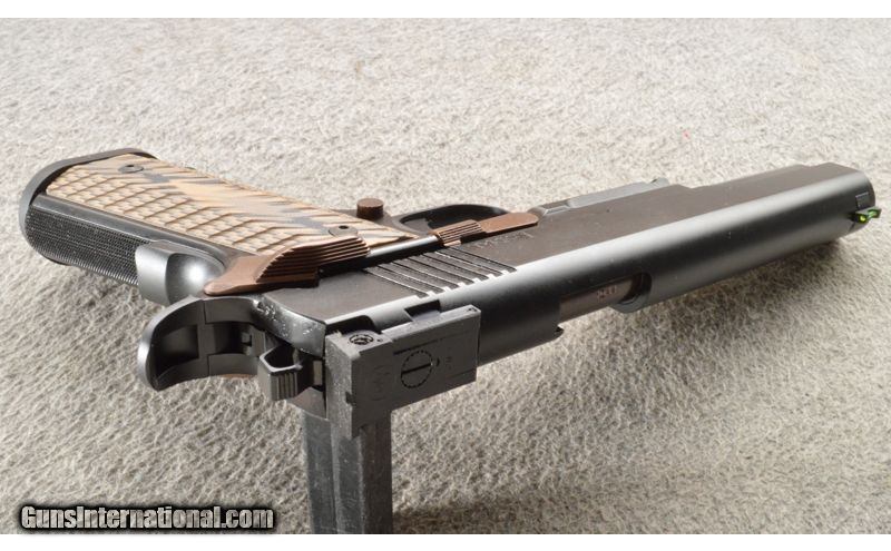 Description: This pistol is like new from Dan Wesson. It is marked as a blemish but we do not see any issue. Letting full-power 10mm loads achieve their potential, the long-slide Kodiak features a 6-inch bushing-less bull barrel. The Black finish has bronzed controls 10mm Auto SOLD Chambers: Semi-auto 8+1. Metal Condition: New in case with a blemish we do not see. Wood Condition: New in case. Barrels: 6.03 inch with sights on the slide. Triggers: Single. Sights: Adjustable rear target and a green fiber optic front. Item Location: Owatonna, MN |