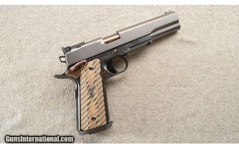 Description: This pistol is like new from Dan Wesson. It is marked as a blemish but we do not see any issue. Letting full-power 10mm loads achieve their potential, the long-slide Kodiak features a 6-inch bushing-less bull barrel. Available in two finish variants, the Black version has bronzed controls and barrel while the tri-tone adds a matte gray slide to boot. Not only does that long barrel give the potent 10mm more time to build energy, the sight radius that comes with it allows for more accuracy as well as greater slide/barrel mass, reducing felt recoil and muzzle flip. Fully-adjustable sights are fitted with fiber optic rods for illumination, and a rail on the dustcover allows for the mounting of a light or laser. Reloads are made smoother by the addition of a magwell and an ambidextrous safety makes this 1911 a bit more lefty-friendly. 10mm Auto SOLD Chambers: Semi-auto 8+1. Metal Condition: New in case with a tiny blemish by the rear sight dovetail (see picture). Wood Condition: New in case. Bore Condition: New in case. Barrels: 6.03 inch with sights on the slide. Triggers: Single. Butt Pad: G10 grips. Weight: 47 oz. Sights: Adjustable rear target and a green fiber optic front. Item Location: Owatonna, MN |