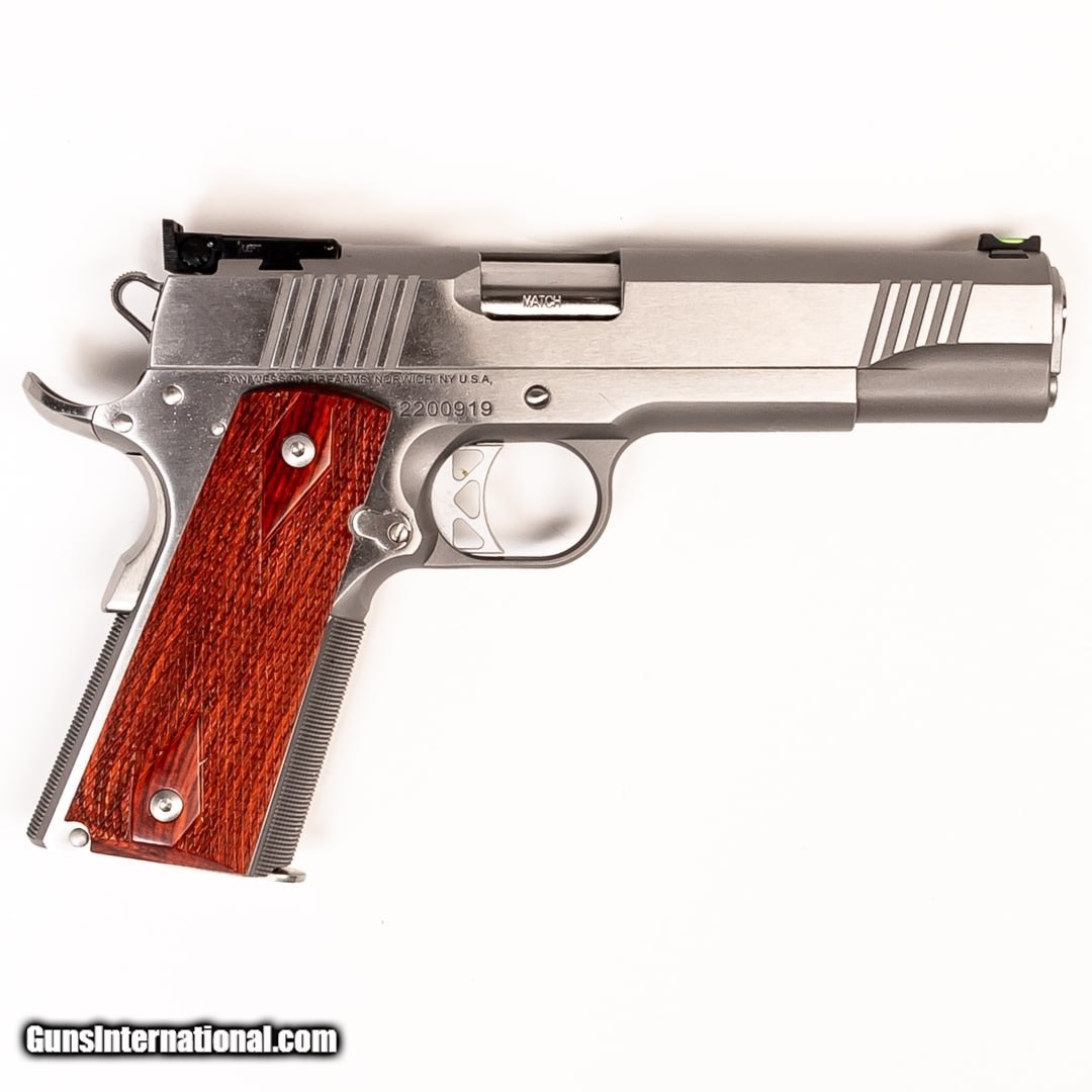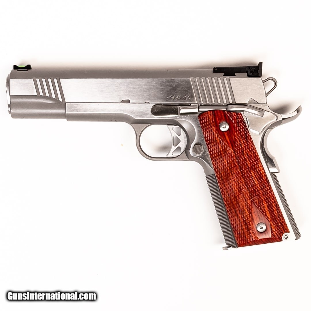 Description: Guns Listing ID: 502868 The Dan Wesson PM-45 is a high-quality handgun patterned off the 1911. Dan Wesson is well known for making some of the finest handguns on the market, with this specific model being geared for duty and self-defense applications. Two 8-round magazines included. SOLD Manufacturer: DAN WESSON Model: PM-45 Caliber Info: .45 ACP Condition: Used - Certified Barrels: 5 BARREL Finish: STAINLESS |