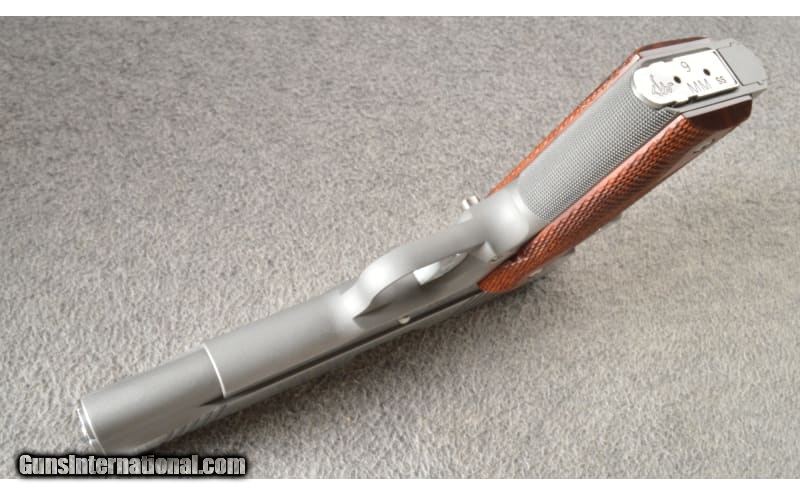 Description: The Pointman 9 chambered in 9 mm. features a 5" barrel, adjustable target rear sight and fiber optic front. Inverted top rib running between the sights to reduce glare, front and rear cocking serrations, undercut trigger guard, checkered front and rear strap, double diamond cocobolo grips.The flats on this pistol are soft brushed while the rounds are bead blasted. Comes new with factory hard case, safety lock, manual, two 9 round magazines. 9mm Luger SOLD Chambers: 9+1 semi auto. Metal Condition: New. Wood Condition: New. Bore Condition: New. Triggers: Single action trigger. Weight: 2.5 lbs Sights: "Fiber optic, adjustable. Item Location: Owatonna, MN |