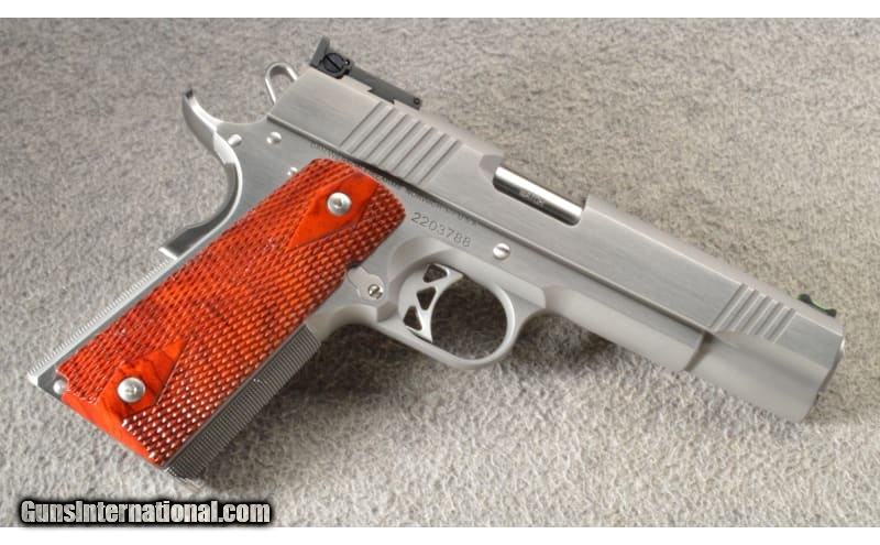 Description: The Dan Wesson Pointman-45 is a 5" series 70 style 1911 chambered in .45 Auto. Features a stainless steel frame and forged stainless steel slide, front and rear cocking serrations, adjustable target rear sight and fiber optic front, diamond checkered cocobolo grips. The flats on this pistol are soft brushed while the rounds are sandblasted. Comes new in the box with (2) 8 rd magazines, factory hard case, safety lock and owners manual. .45 Auto SOLD Chambers: 8+1 semi auto. Metal Condition: New. Wood Condition: New. Bore Condition: New. Triggers: Single action trigger. Weight: 2.5 lbs Item Location: Owatonna, MN |