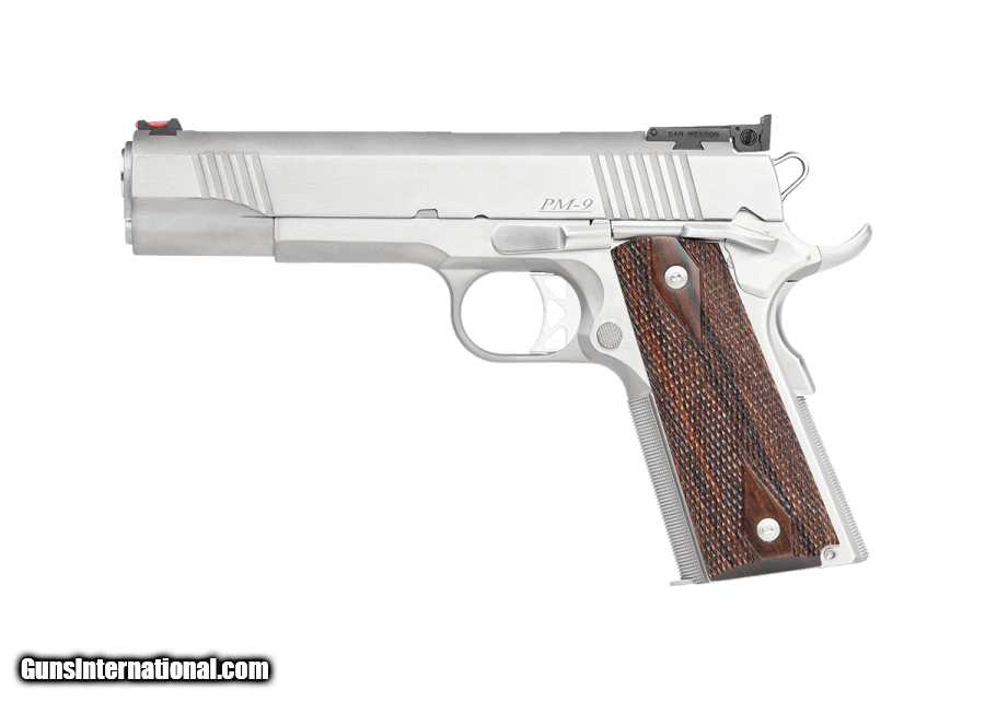 Description: The Pointman series is built for the range, with an adjustable target rear sight and fiber optic front. Its forged slide has our Clark-style rib running between the sights to reduce glare and has front and rear cocking serrations to enable easy manipulation. The forged stainless frame has an undercut trigger guard to get the hand a little higher on the pistol and 25 LPI front strap checkering to hold it firmly in place without being too harsh. Flats on this pistol are soft brushed while the rounds are sandblasted, giving a nice contrast. Double diamond cocobolo grips finish it off. The Pointman shines at both the range and in competition. ONE LEFT IN STOCK TODAY IN 9MM! SOLD |
