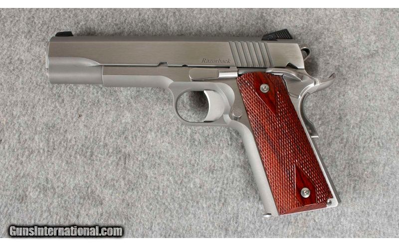 Description: For sale is the Dan Wesson Razorback 1911 chambered in the powerful 10 MM. This gun is full stainless steel, The side flats have a beautiful satin polish while the top of the slide and around the frame and grips are matted. 10mm Auto SOLD Metal Condition: Excellent Wood Condition: Excellent Bore Condition: Excellent Barrels: 5 Triggers: SA Butt Pad: Rosewood grips. Weight: 48 OZ Sights: "Novak rear sight blacked out, with white dot front. Item Location: East Hartford, CT |