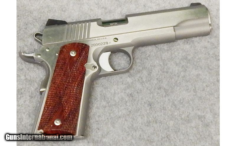 Description: Dan Wesson Razorback in 10mm auto with a brushed stainless finish, checkered walnut double diamond grips, target sights, and ambi safety. Comes with factory box with paperwork and two magazines. SOLD Caliber Info: 10mm Auto. Chambers: Semi auto. Metal Condition: Light scratches. Wood Condition: Light scratches. Bore Condition: ANIB. Barrels: 5" stainless steel match. Triggers: Single action only. Stock: Double diamond wood. Weight: 40 Oz. Sights: Fixed target rear and white dot front. Extras: Comes with factory box with paperwork and two magazines. Item Location: Acworth, GA |
