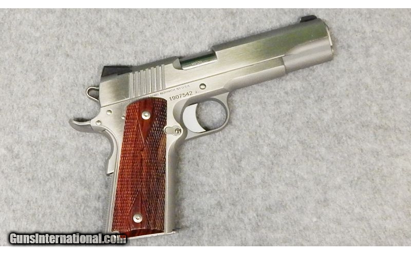 Description: Dan Wesson Razorback in 10mm auto with a brushed stainless finish, checkered walnut double diamond grips, target sights, and ambi safety. Comes with factory box with paperwork and two magazines. SOLD Caliber Info: 10mm auto. Chambers: Semi auto. Wood Condition: ANIB Bore Condition: ANIB Barrels: 5" stainless steel match. Triggers: Single trigger for single action fire. Stock: Walnut double diamond checkering. Butt Pad: ANIB Weight: 40 Oz. Sights: Dan Wesson target sights. Extras: Comes with factory box with paperwork and two magazines. Item Location: Acworth, GA |