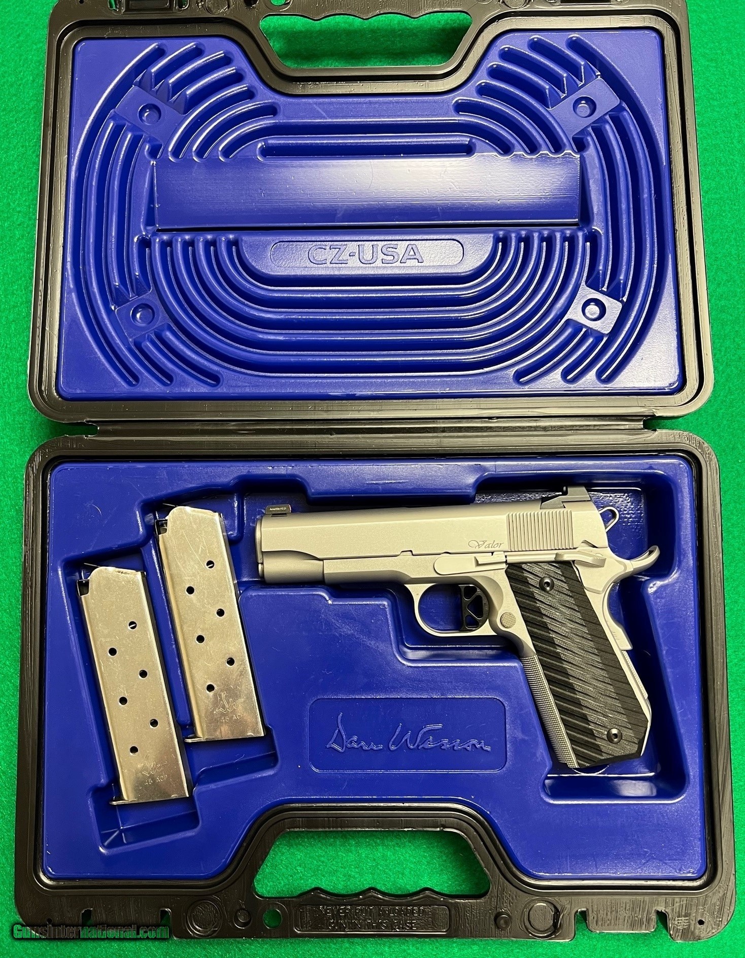 Description: Guns Listing ID: 571638 This Valor V-Bob is in excellent condition and has had only a few rounds run through it. It includes the original box and 2 8-round magazines. SOLD Manufacturer: DAN WESSON Model: V-Bob Caliber Info: .45 ACP Condition: Used - Non-Certified Barrels: 4.25" barrel Finish: STAINLESS AND BLACK |