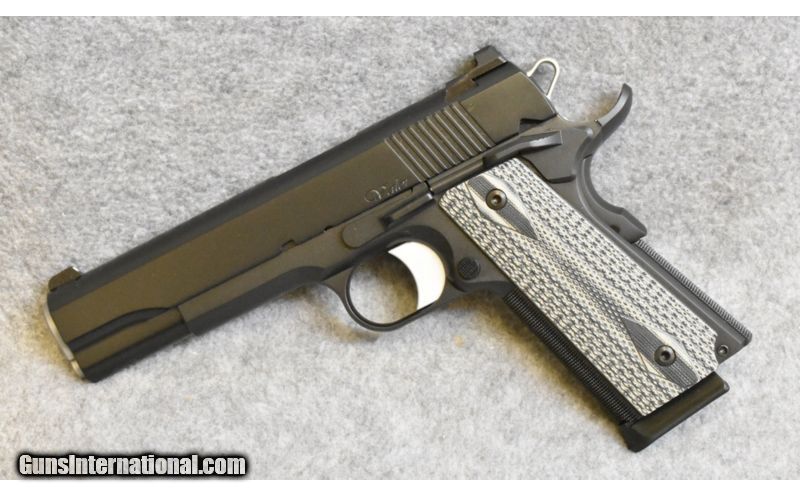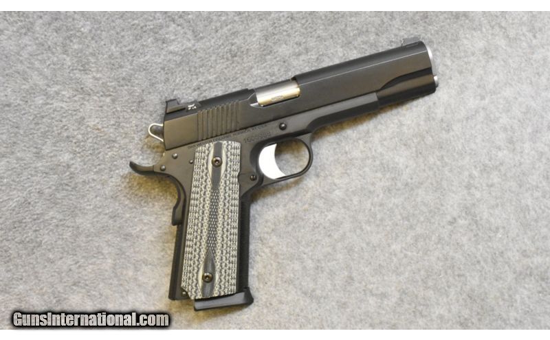 Description: Factory blemished gun. Pits on the slide flats. SOLD Caliber Info: .45 ACP Metal Condition: excellent condition, a couple of pits on the slide flats Bore Condition: bright and sharp Barrels: 5 inch Triggers: single Stock: checkered G10 grips Weight: 2.4 lbs Sights: Trijicon two dot night sights Extras: comes with the factory case Item Location: Kansas City, KS |