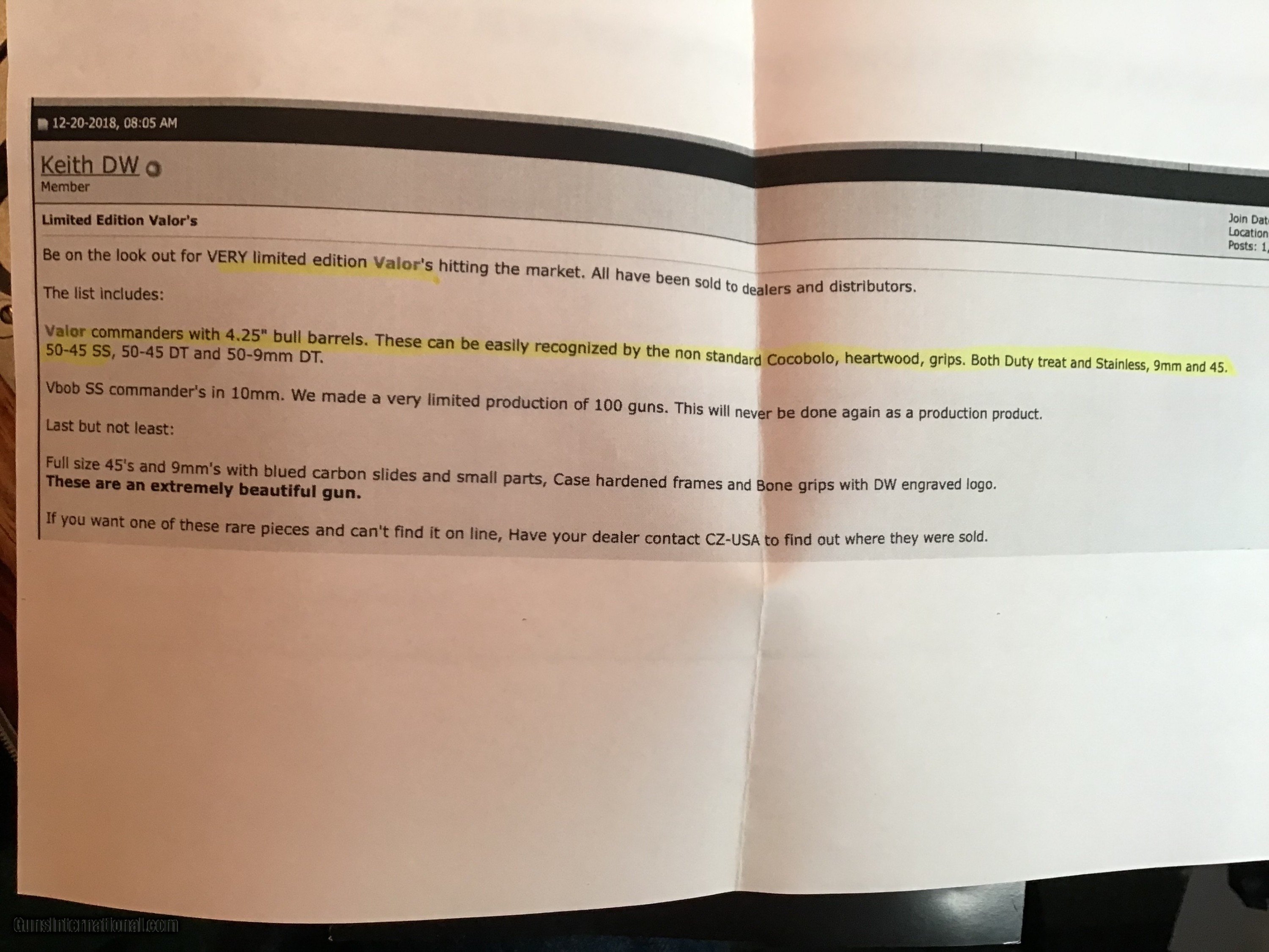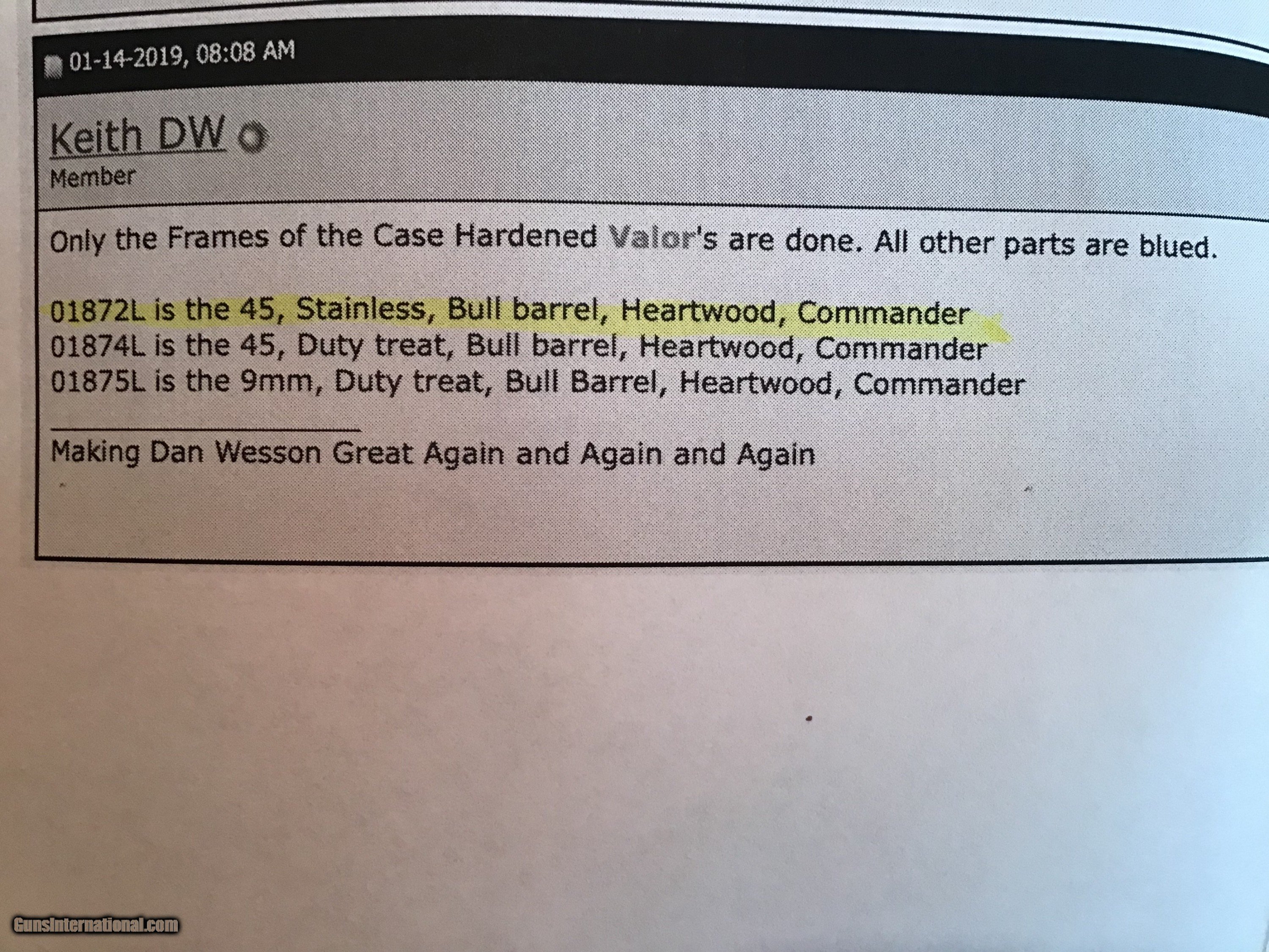 Dan Wesson Valor Limited Commander, Stainless, Bull Barrel, 1 of 50 made in 2018, .45 acp