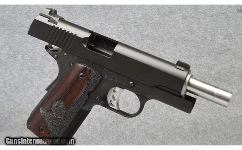 Description: Commander sized 9 mm with alloy frame, Dan Wesson wood grips, duty black finish. Factory " Blem" offering shows a slight over polished areas on the right side of frame next to the grip safety pin. Includes factory box, manuals and extra 9 round magazine. 9mm Luger SOLD Metal Condition: Duty Black Finish Bore Condition: Bright Sharp Barrels: 4 1/4 Triggers: Single Action Auto Weight: 32 oz. Sights: "Tactical Rear sight, Tritium Front Item Location: Buda, TX |