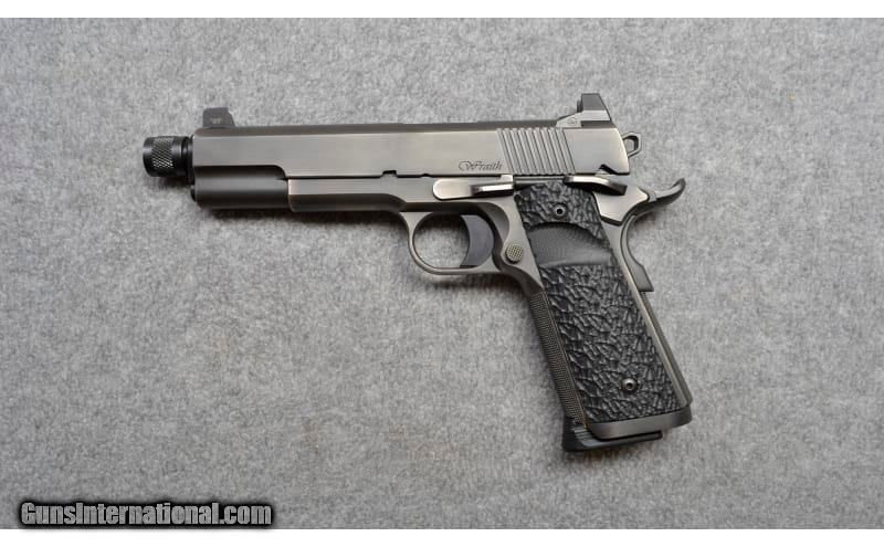Description: Pre-owned Dan Wesson Arms Wraith Government sized 1911 chambered in .45 ACP, 5 3/4 in. threaded barrel, 8 round magazine, grippy stippled G10 grips, forward slide serrations, distressed duty finish. Mfg. 2018-2020. .45 ACP SOLD Metal Condition: Very Good Condition Bore Condition: Bright and shiny with sharp rifling Barrels: 5 3/4 inches Weight: 42.3 oz. Sights: High night sights Item Location: Springfield, OR |