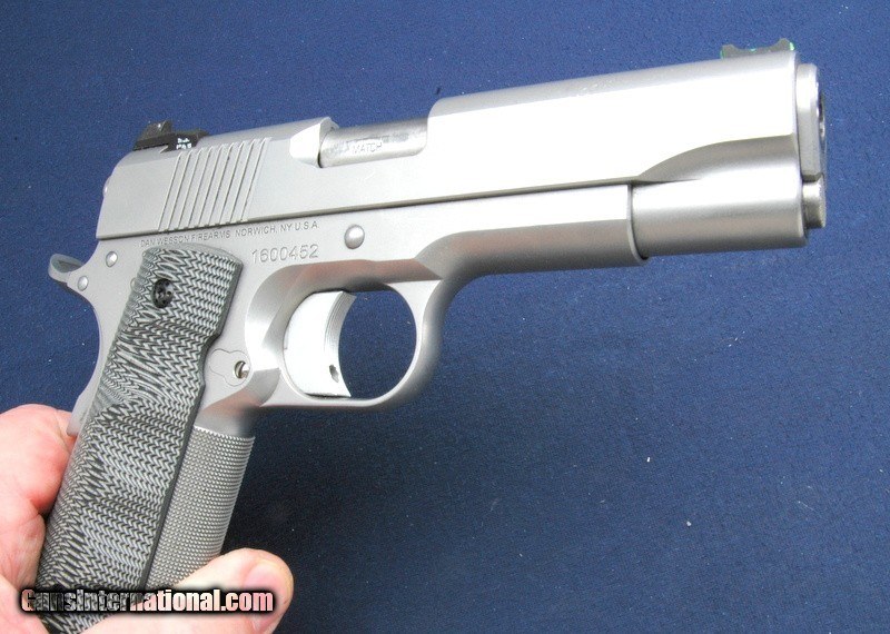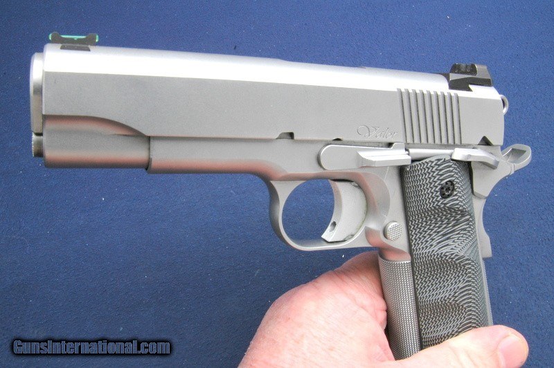 Description: This Valor is their stainless steel Commander model, chambered in 9mm.Checkered frontstrap and mainspring housing, big ol' magwell, beavertail grip safety, contoured G10 grips, match barrel, tritium dot rear sight and green hi viz front. Superb trigger. Huge savings from brand new! $50 shipping to the lower 48, 3% surcharge for using a CC. If you choose to pay with a personal check, we will hold the item for up to 10 days to make sure that it clears. Please expedite such pymts as we will hold an item on your word for 5 days. SOLD Handgun Caliber: 9x19mm Parabellum (9mm Luger, 9x19mm NATO) |