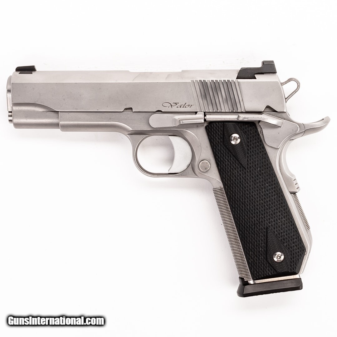 Description: Guns Listing ID: 365523 The Dan Wesson Valor is genuinely one of the nicest 1911's ever produced. They are made to the highest standard and are commonly used for competition shooting, tactical applications, and as a civilian self-defense sidearm. If you're in the market for a premium-grade 1911 the Dan Wesson Valor is one of the best options available. This pistol features Heinie Straight 8 tritium night sights, G-10 grips, and three 8-round magazines. SOLD Manufacturer: DAN WESSON Model: VALOR Caliber Info: .45 ACP Condition: Used - Certified Barrels: 4.3 BARREL Finish: STAINLESS |
