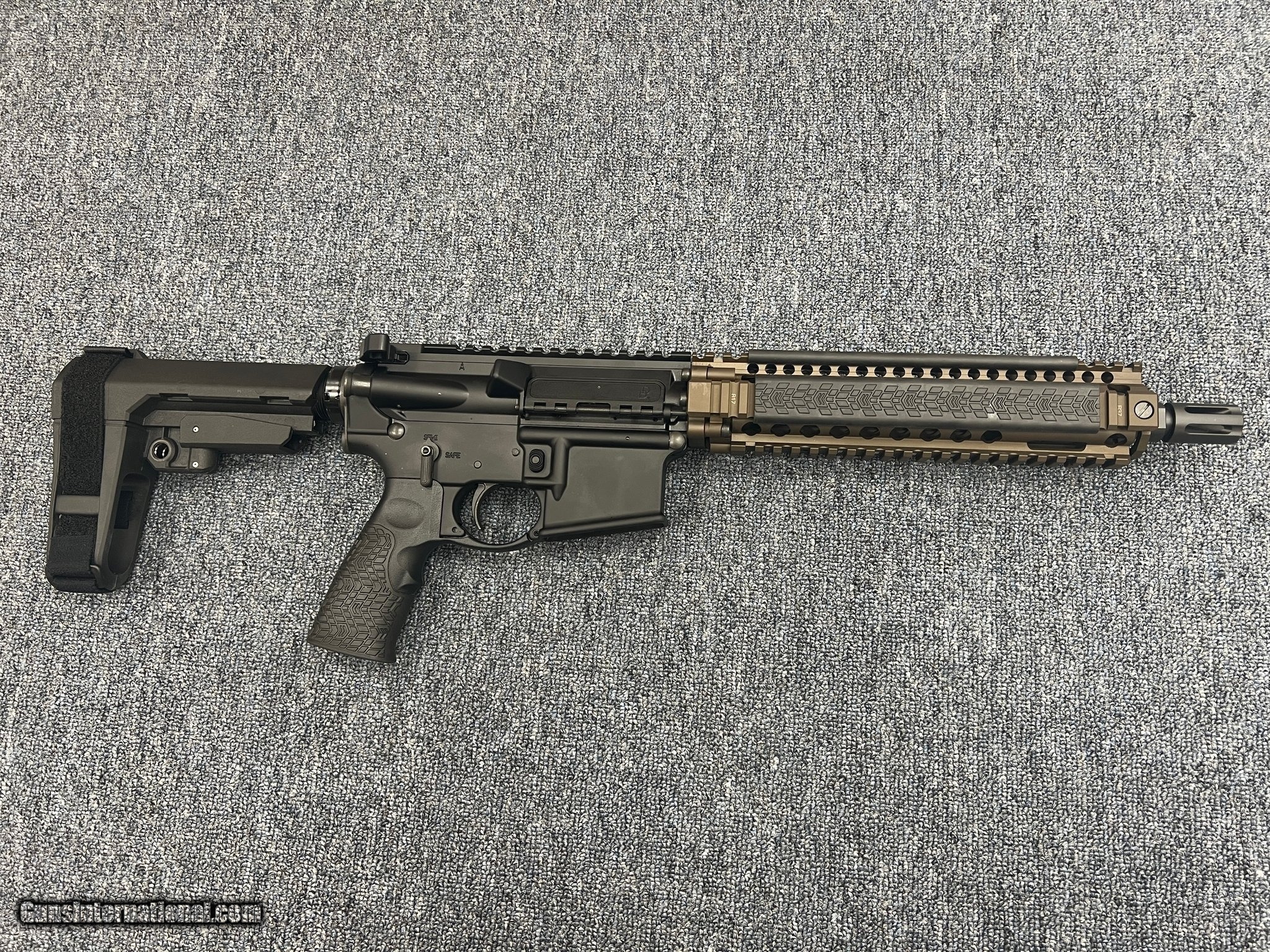 Description: Guns Listing ID: 1379038 This AR pistol has a 11.5in barrel with a picatinny hand guard. it has one 32rd magazine and a Radian charging handle. Original box included. UNFIRED!!! SOLD Manufacturer: DANIEL DEFENSE Model: DDM4 PDW Caliber Info: 5.56X45MM NATO Condition: Used - Non-Certified Barrels: 10.3 BARREL Finish: MILSPEC BROWN |