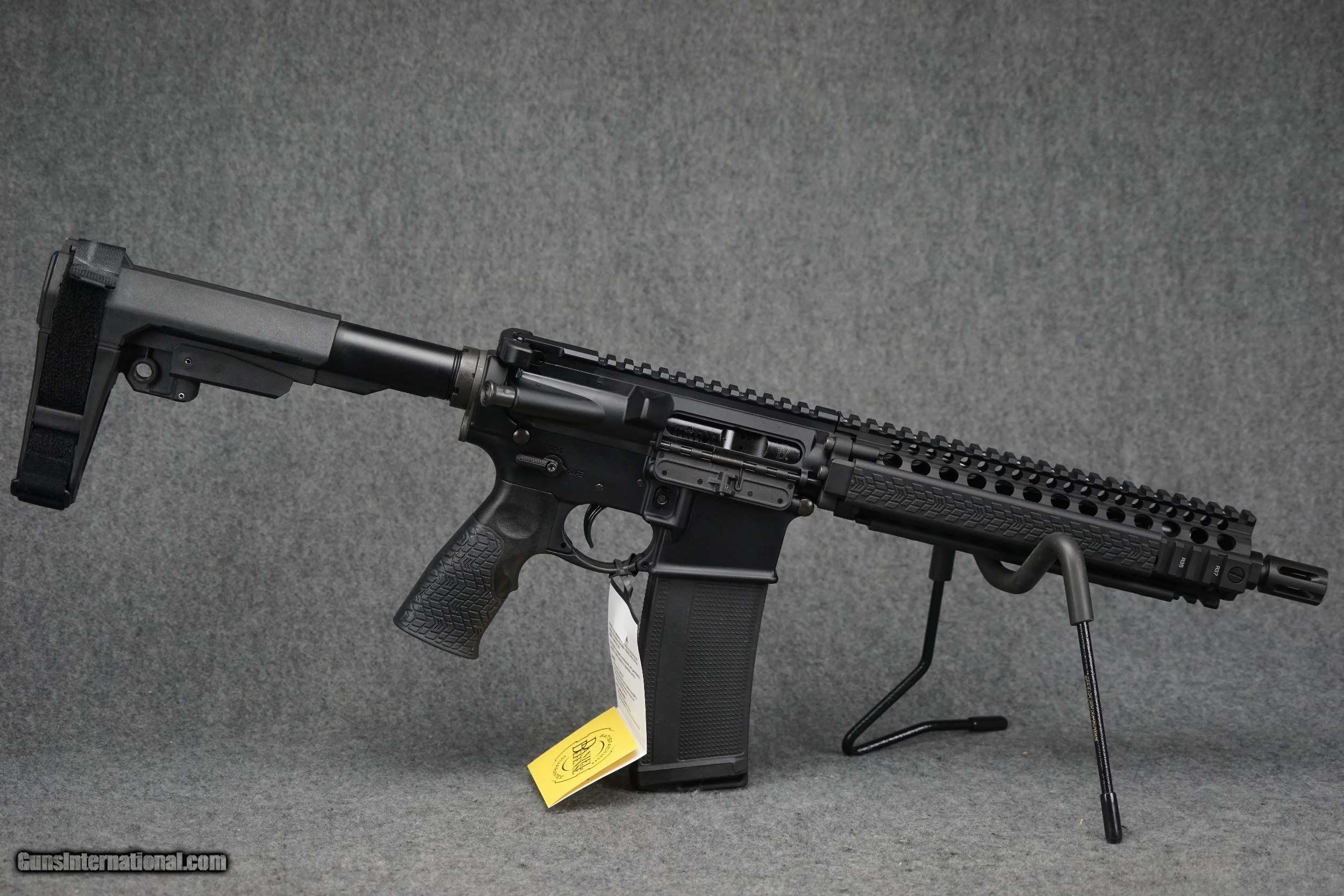 Description: The MK18 AR15 style Pistol is inspired by the original MK18, which has been extremely popular within the Law Enforcement and Special Operations communities. This firearm is classified as a Pistol and not a Short Barreled Rifle (NFA regulated items require ATF approval and a tax stamp). The MK18 Pistol features the picatinny quad rail Daniel Defense currently provides to USSOCOM and a 10.3 inch Cold Hammer Forged Barrel, the same length commonly used for CQB operations. The MK18 RISII features our patented 6-bolt Bolt-Up System and has been rigorously tested prior to fielding by USSO This pistol comes equipped with the SB Tactical SBA3 Pistol Stabilizing Brace with 5 positions of adjustability and integral, ambidextrous QD swivel attachment point. The independently ambi GRIP-N-RIP Charging Handle accommodates left- and right-handed shooters. This pistol comes equipped with the ergonomic Daniel Defense Pistol Grip with an integral trigger guard and soft touch overmolding. LOWER RECEIVER: Mil-Spec with Enhanced Flared Magazine Well and Rear Receiver QD Swivel Attachment Point. CNC Machined of 7075-T6 Aluminum, Type III Hard Coat Anodized UPPER RECEIVER: Mil-Spec with Indexing Marks and M4 Feed Ramps. CNC Machined of 7075-T6 Aluminum, Type III Hard Coat Anodized RECEIVER EXTENSION: AR Pistol Receiver Extension BARREL: Chrome Moly Vanadium Steel, Cold Hammer Forged, 1:7 Twist, 10.3" Government Profile, Chrome Lined, Mil-Spec Heavy Phosphate Coated, and HP/MPI Tested GAS SYSTEM: Low Profile Gas Block CNC Machined of 4140 hardened steel with Mil-Spec Heavy Phosphate Coating, Carbine Length, Direct Impingement MUZZLE DEVICE: Daniel Defense Flash Suppressor, 17-4 PH Stainless Steel, Salt Bath Nitride Finished BOLT CARRIER GROUP: M16 Profile, MP Tested, Chrome Lined, Properly Staked Gas Key BUFFER: H Buffer HANDGUARD: Daniel Defense RIS II MK18, CNC Machined of 6061-T6 Aluminum, Type III Hard Coat Anodized, Black CHARGING HANDLE: GRIP-N-RIP Charging Handle, Body CNC Machined of 7075-T6 Aluminum, Handles & Latch CNC Machined of 6061-T6 Aluminum, Heavy Duty Stainless Steel Roll Pins, Type III Hard Coat Anodized BRACE: SB Tactical SBA3 Pistol Stabilizing Brace PISTOL GRIP: Daniel Defense Pistol Grip, Glass Filled Polymer with Soft Touch Overmolding RAIL PANELS: Daniel Defense Rail Panels made from Santoprene, heat resistant to 300° F. More Information Mounting System Picatinny Caliber 5.56mm NATO Muzzle Thread 1 ⁄ 2 × 28 TPI (Threads Per Inch) Gas System Carbine Barrel Length 10.3" Barrel Profile Government Product Weight 5.85 Length 28 5/8" Magazine DD Magazine (32 Round) SOLD Handgun Caliber: 5.56x45mm NATO Manufacturer: Daniel Defense Model: MK18 Barrel Length: 10.3" Barrel Condition: BRAND NEW |