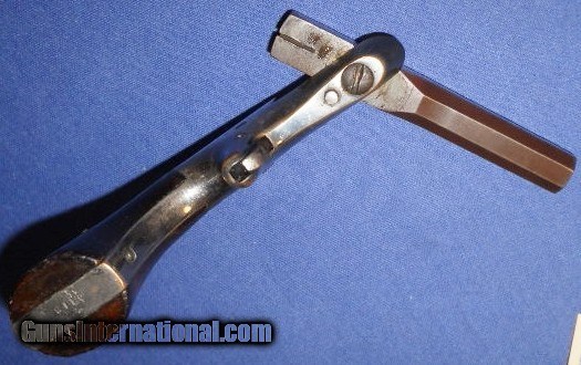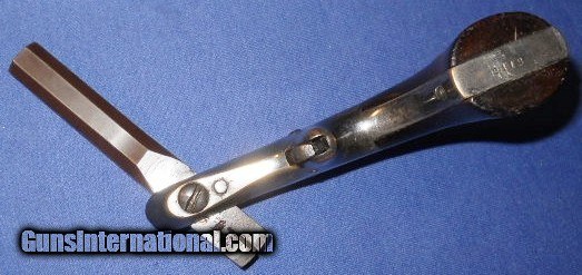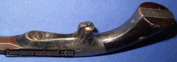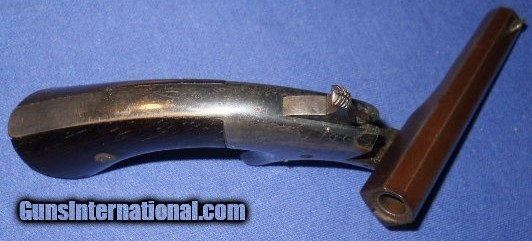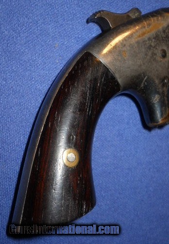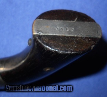 Description: UNMARKED EARLY 1860s MERWIN & BRAY, NEW YORK CITY SINGLE SHOT DERRINGER .32 rf SER. # 2412 MATCHING NUMBERS. 3 5/8" OCTAGON BARREL, BORE HAS DISTINCT RIFLING SOME EXPECTED SCATTERED PITTING MOSTLY LIGHT IN NATURE. BARREL A SMOOTH EVEN DARK BROWN PATINA. FRAME RETAINS OVER 90% ORIGINAL UNCLEANED SILVER PLATE WITH SOME HIGH EDGE WEAR & HANDLING MAKS. FACTORY ROSEWOOD GRIPS ARE NUMBERED TO THE GUN AND RATE VERY GOOD to EXCELLENT SHOWING LIGHT HANDLING & WEAR. ACTION IS CRISP & ROBUST, SLIGHTLY LOOSE BARREL TO FRAME LOCKUP. IT'S BEEN NOTED THAT THEY WERE LIKELY MADE BY "BACON MFG. Co." NORWICH, CT AND OFFERED THROUGH RETAILERS. A RATHER NICE EXAMPLE OF THESE UNCOMMON DERRINGERS, AS PICTURED. $10.00 S&H DIRECT TO BUYER ANYWHERE THAT'S OK. INSURANCE ADDITIONAL COST IF WANTED. SEE ALL "ESTATE ANTIQUES" LISTINGS FOR RECENTLY AQUIRED ITEMS FROM ESTATE COLLECTIONS AT SENSIBLE PRICES. SOLD Antique: Yes Handgun Caliber: .32 Rimfire Manufacturer: MERWIN & BRAY Model: DERRINGER Serial Number: 2412 Barrel Length: 3 5/8 Bore: DISTINCT RIFLING Chambers: CLEAR Condition: FINE AS PICTURED Metal Condition: ORIGINAL Wood Condition: NEAR EXCELLENT Bore Condition: VERY GOOD, BRIGHT Barrel Type: OCTAGON Action: WORKING Finish: ORIGINAL AGED Weight: 8.3 oz Sights: FACTORY ORIGINAL Manufacture Date: 1859-1866 |