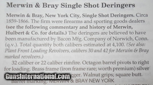 * Antique 1860s MERWIN & BRAY DERRINGER .32 RF SINGLE SHOT CIVIL WAR ERA