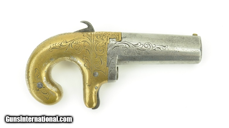 Description: Extremely Rare Early 1st Model Moore Derringer Serial Number 37. One of the earliest! 1st Model 1st variation with the barrel latch on the left hand side and the straight trigger sheath. This is serial number 37. This is one of the latest of the earliest models. This gun has the sight cut into the hammer. Barrel address has the early “Patent/Applied For”. Frame has 25% of the original nickel finish. Engraving is nice. Extremely early and hard to find gun! SOLD Antique: Yes |