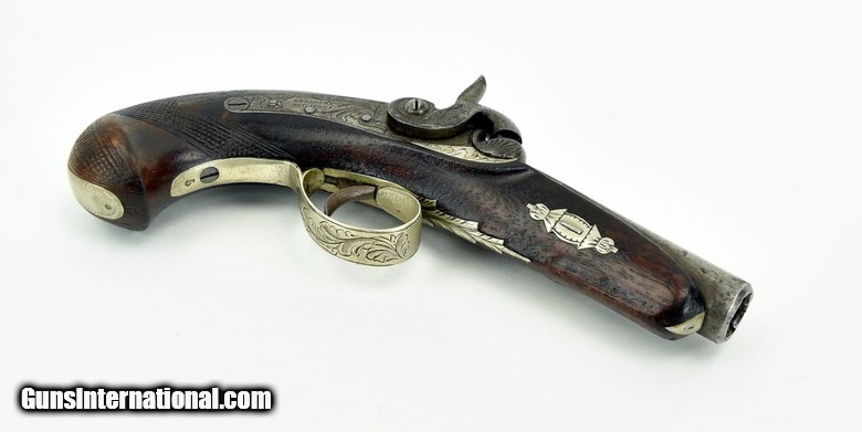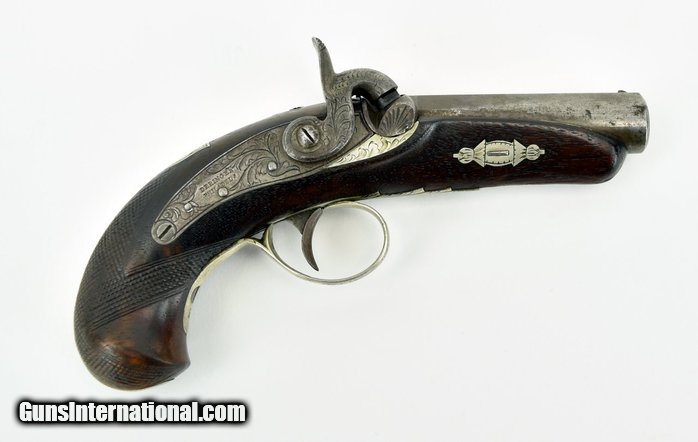 Description: Henry Deringer nice sharp gun. Barrel is 3 ¼” and the total length is about 7” in total length. Gun is in .44 caliber. Engraving is nice and sharp. Mechanics are excellent. SOLD Antique: Yes |