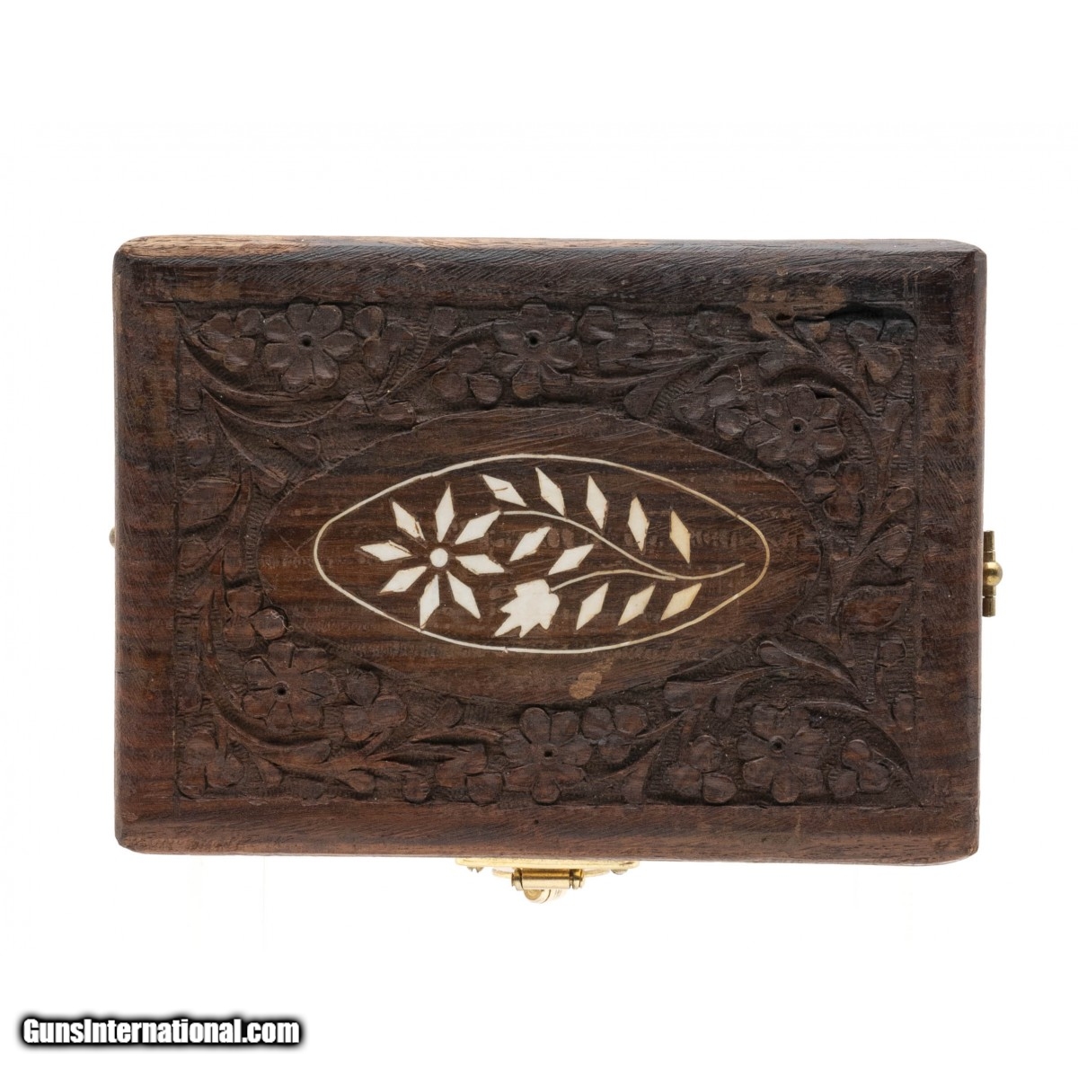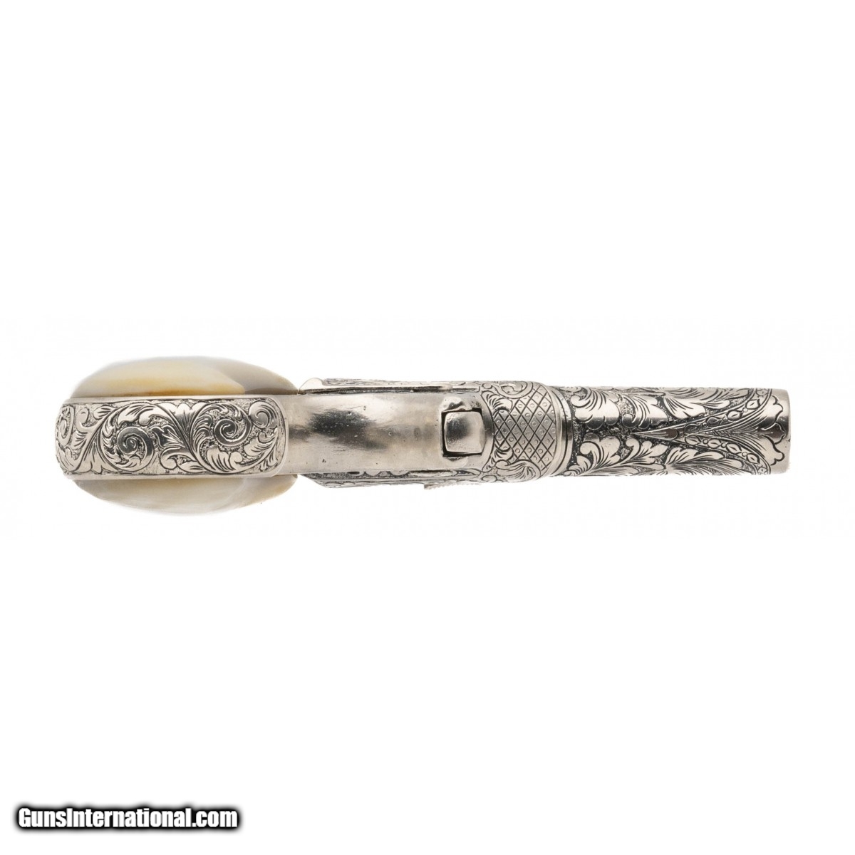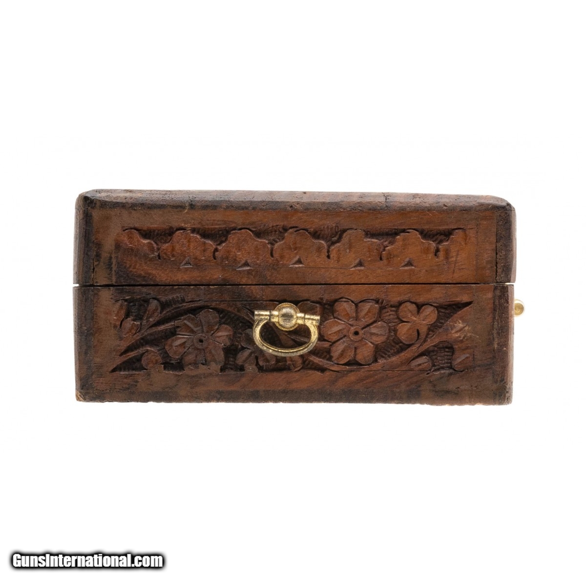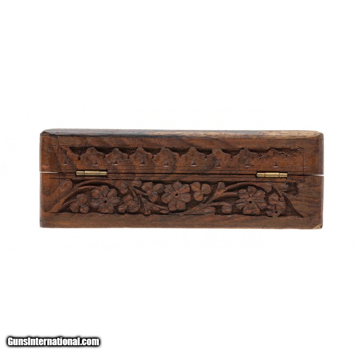 Description: "Serial number L523. Made Pre 1898. Very fine engraved Remington over / under derringer. This gun is possibly engraved by the master Ben Shostle, but more likely engraved in his style. This gun comes in a beautifully carved wood case with bone inlays. SOLD Antique: Yes |